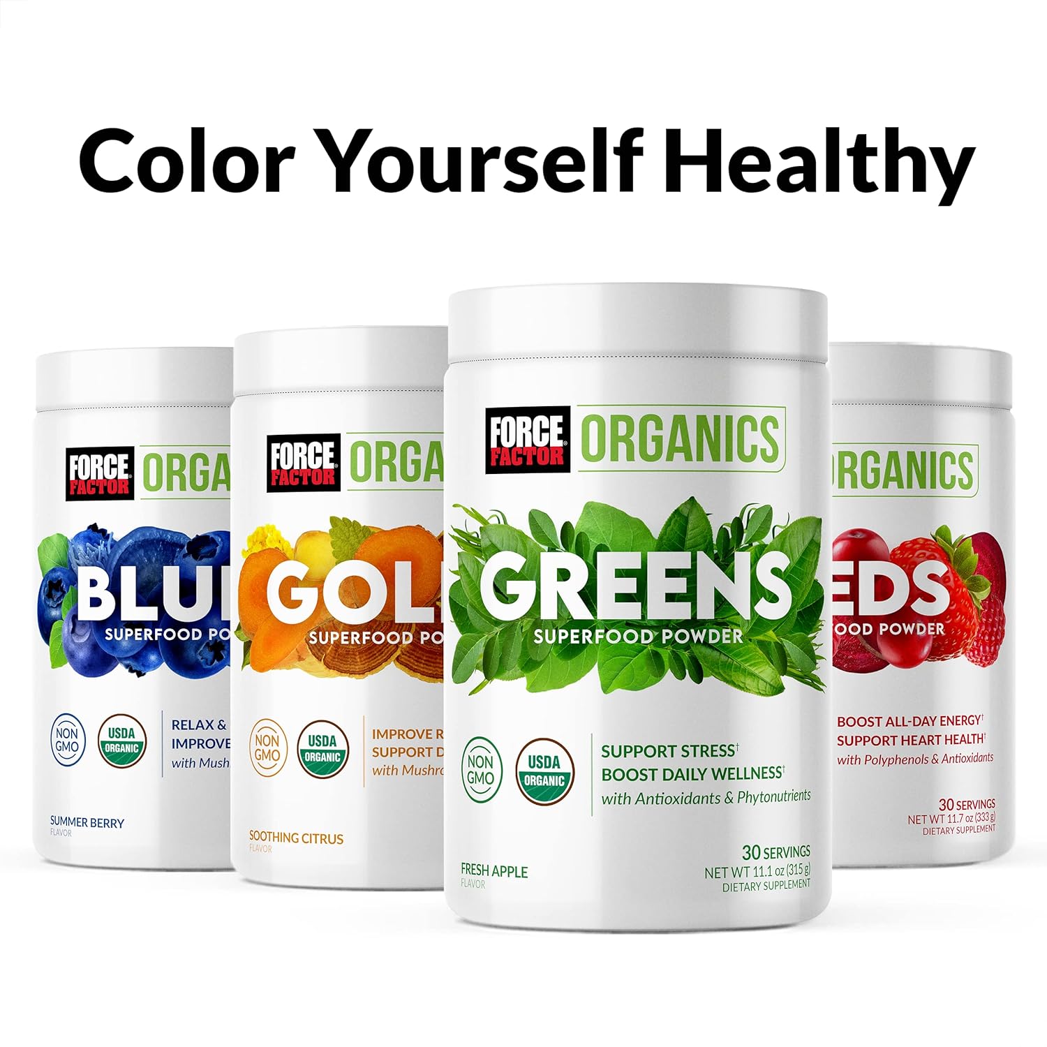 CERTIFIED ORGANIC & NON-GMO: Not only is it organic, non-GMO, gluten-free, and vegan, Force Factor Organics Blues Superfood contains no artificial colors or artificial sweeteners, making it a high quality mood support supplement you can trust.