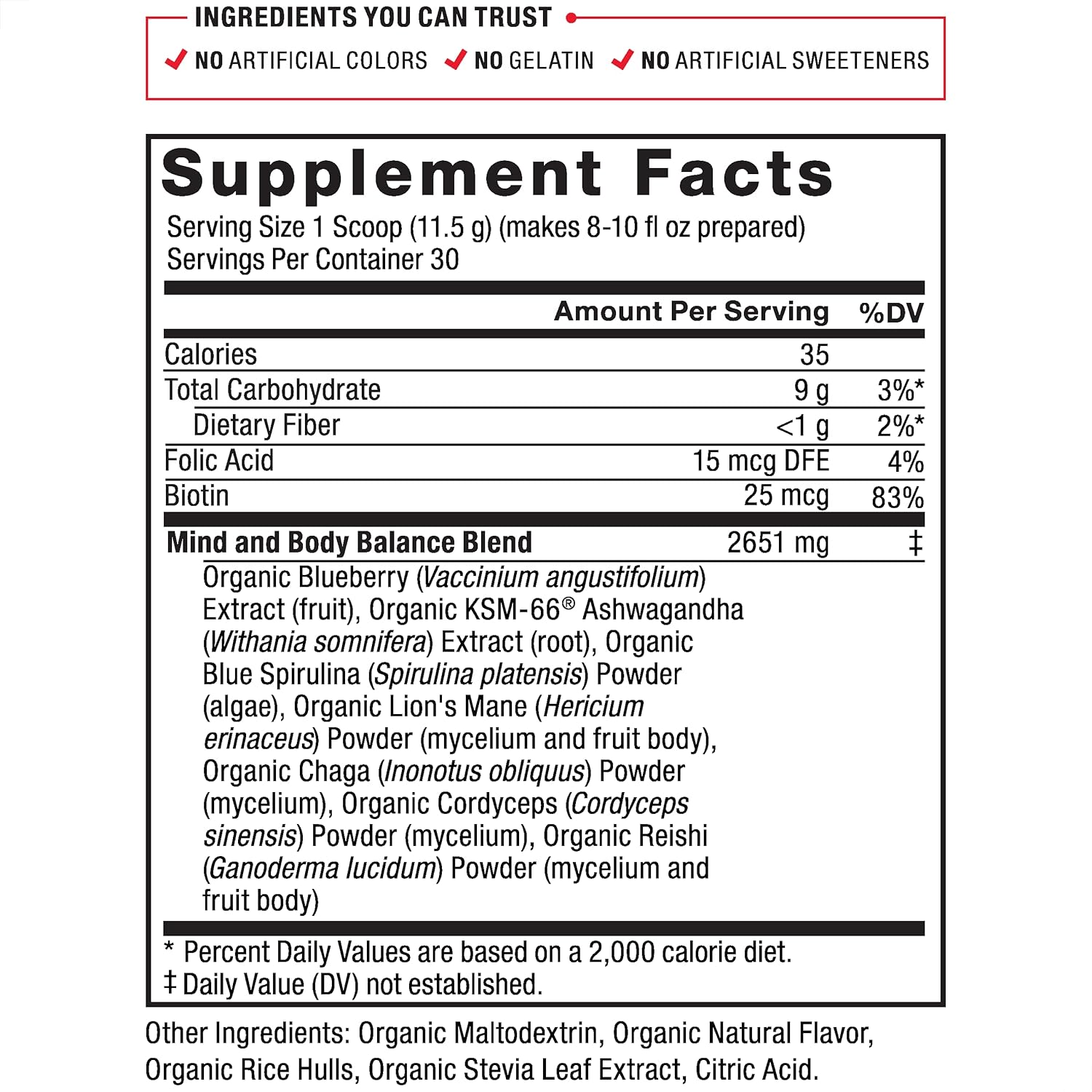 IMPROVE MOOD & COGNITIVE HEALTH: Like a mushroom supplement with stress relief benefits, Force Factor Organics Blues Superfood helps clear your mind and banish the blues to improve your mood and focus.