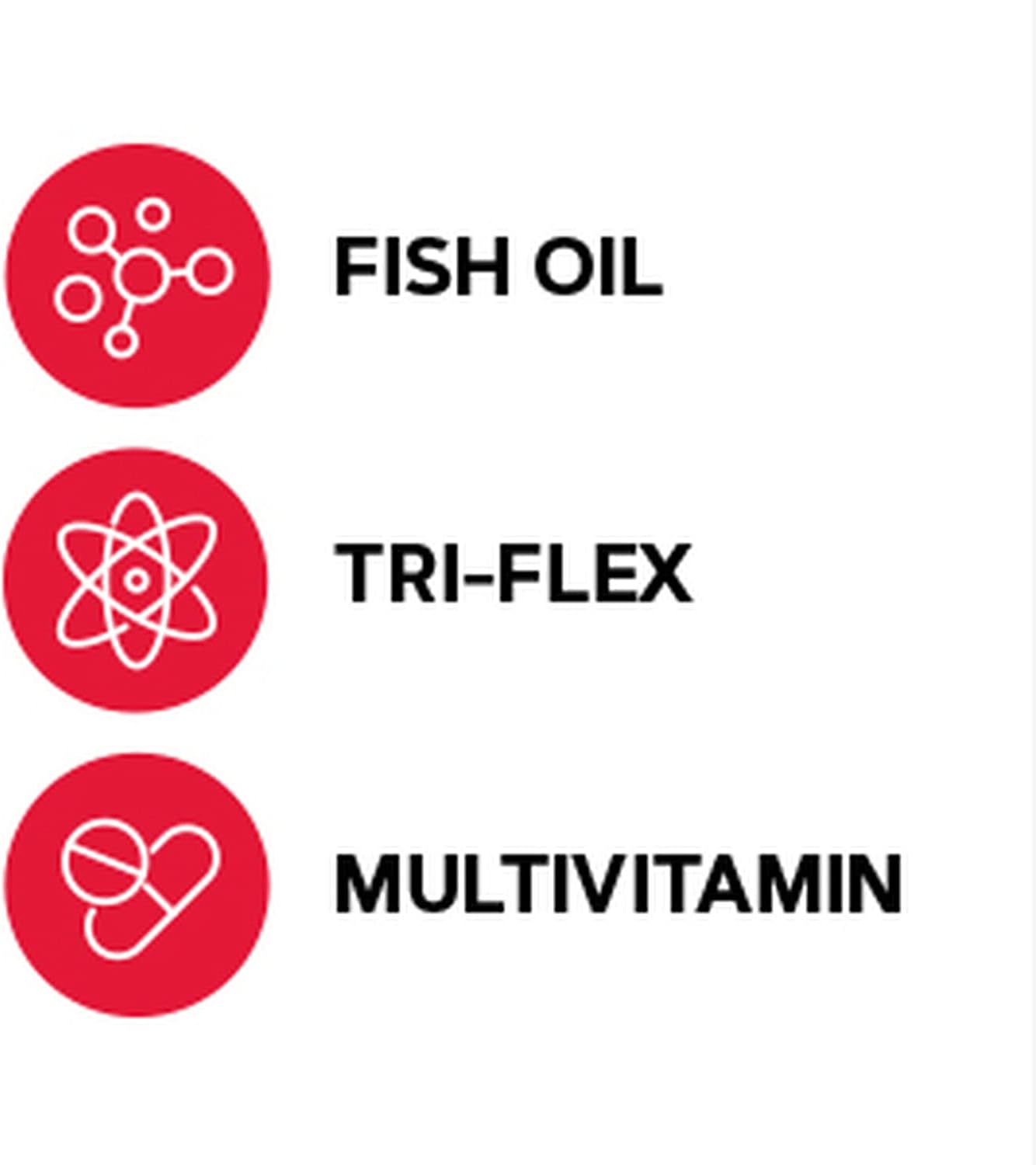 Each Vitapak program contains six pills: High Potency Fish Oil, three caplets of TriFlex, and two capsules of Mega Men Multivitamin. Take the contents of one pack daily with food.