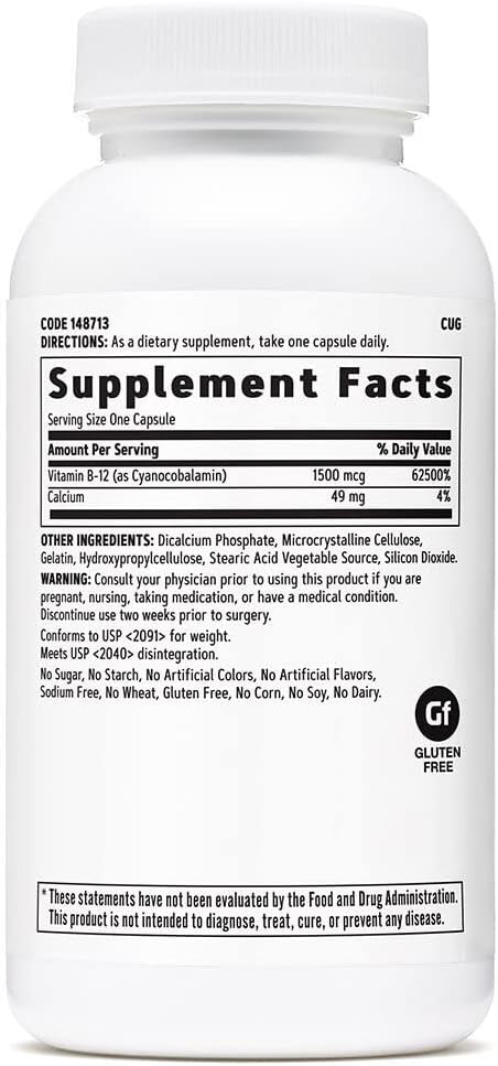 GNC Vitamin B-12 – 1500 mcg: Carbohydrate Metabolism and Energy Support Vitamin B-12 is essential for carbohydrate metabolism & energy production and is required for red blood cell formation. GNC’s Vitamin B-12 – 1500 mcg is kosher and gluten free. Contains a 90-day supply of 90 capsules