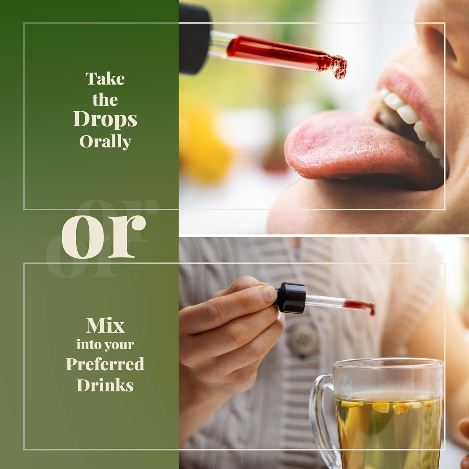 No pills or tablets to swallow. Simply use the dropper to take it straight in the mouth or mix it with juice or water.