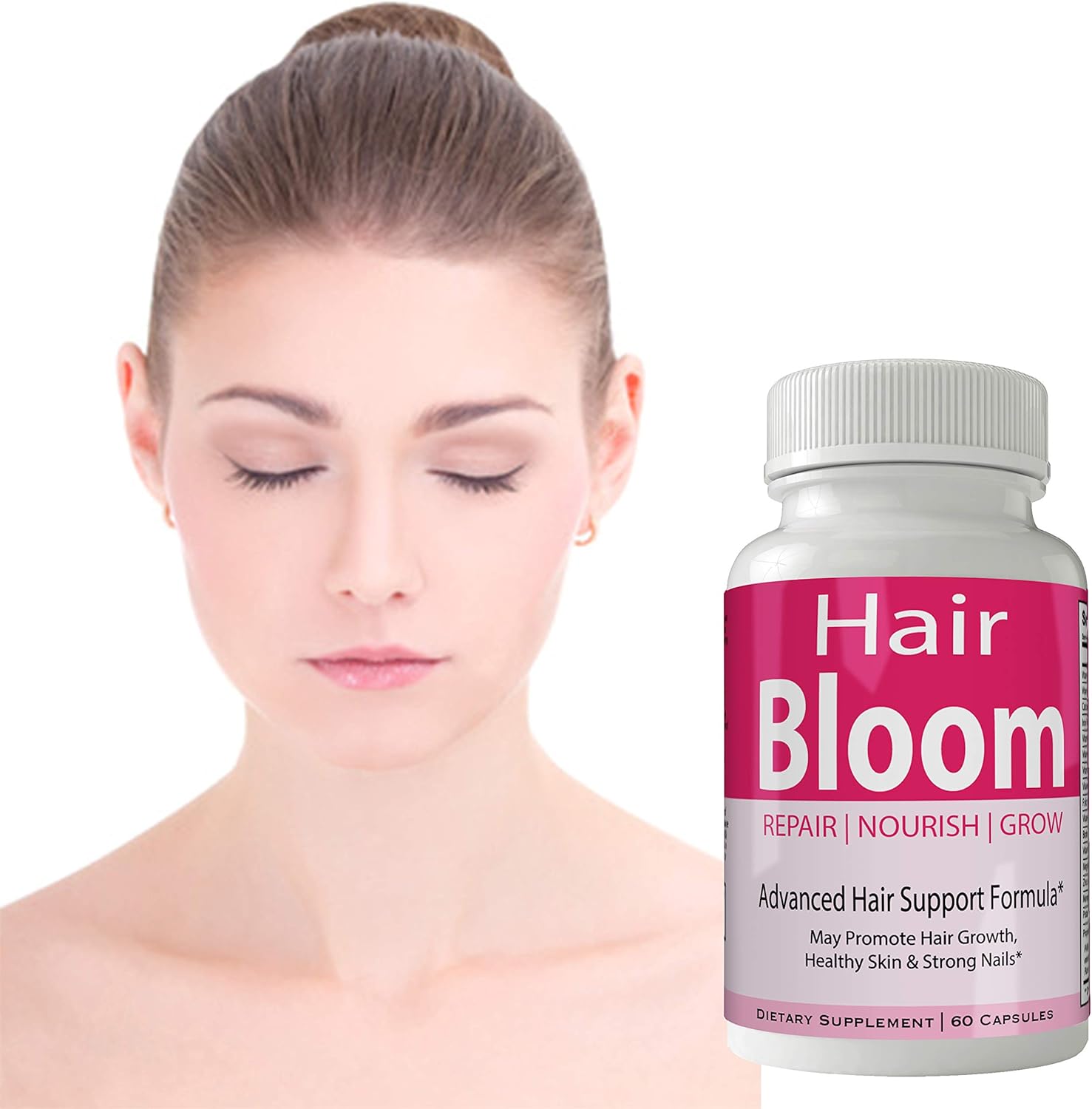 Hair Bloom Hair Growth Pills Skin and Nails Supplement – Advanced Unique Hair Growth Vitamins and Minerals with Biotin – Gluten Free 60 Capsules
