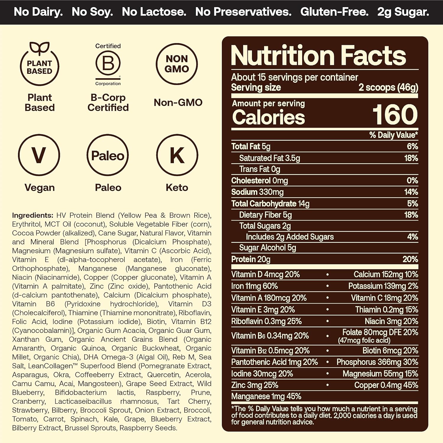 Happy Viking Cookies and Cream Plant Protein Powder, Created by Venus Williams, 20G Protein, Low Carb, Keto, Vegan, Gluten-Free, Non-GMO, Superfoods, Complete Meal Replacement, 1 Canister
