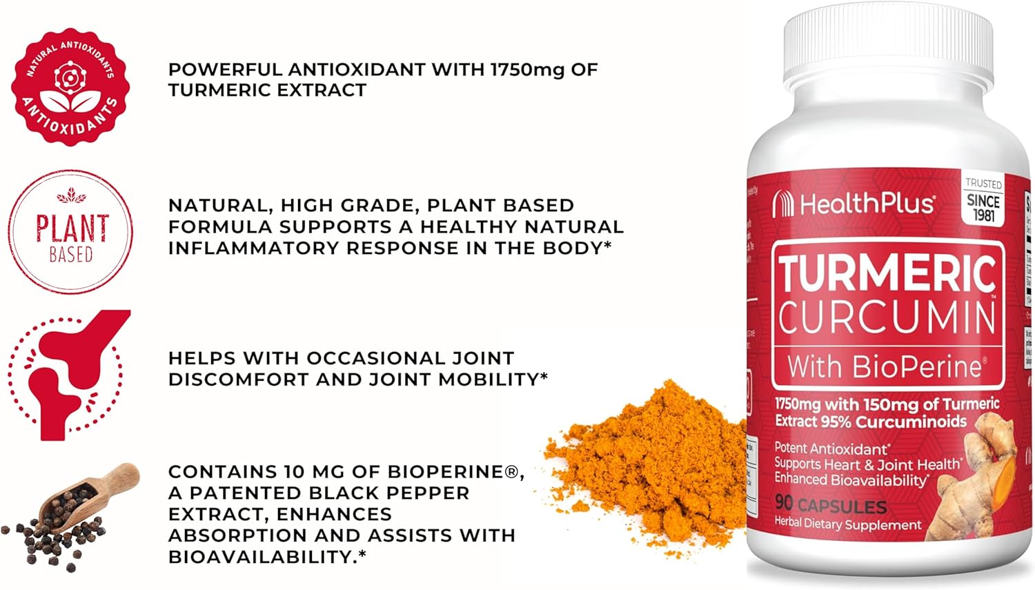 Health Plus Turmeric Curcumin, 90 Capsules, 30 Serving