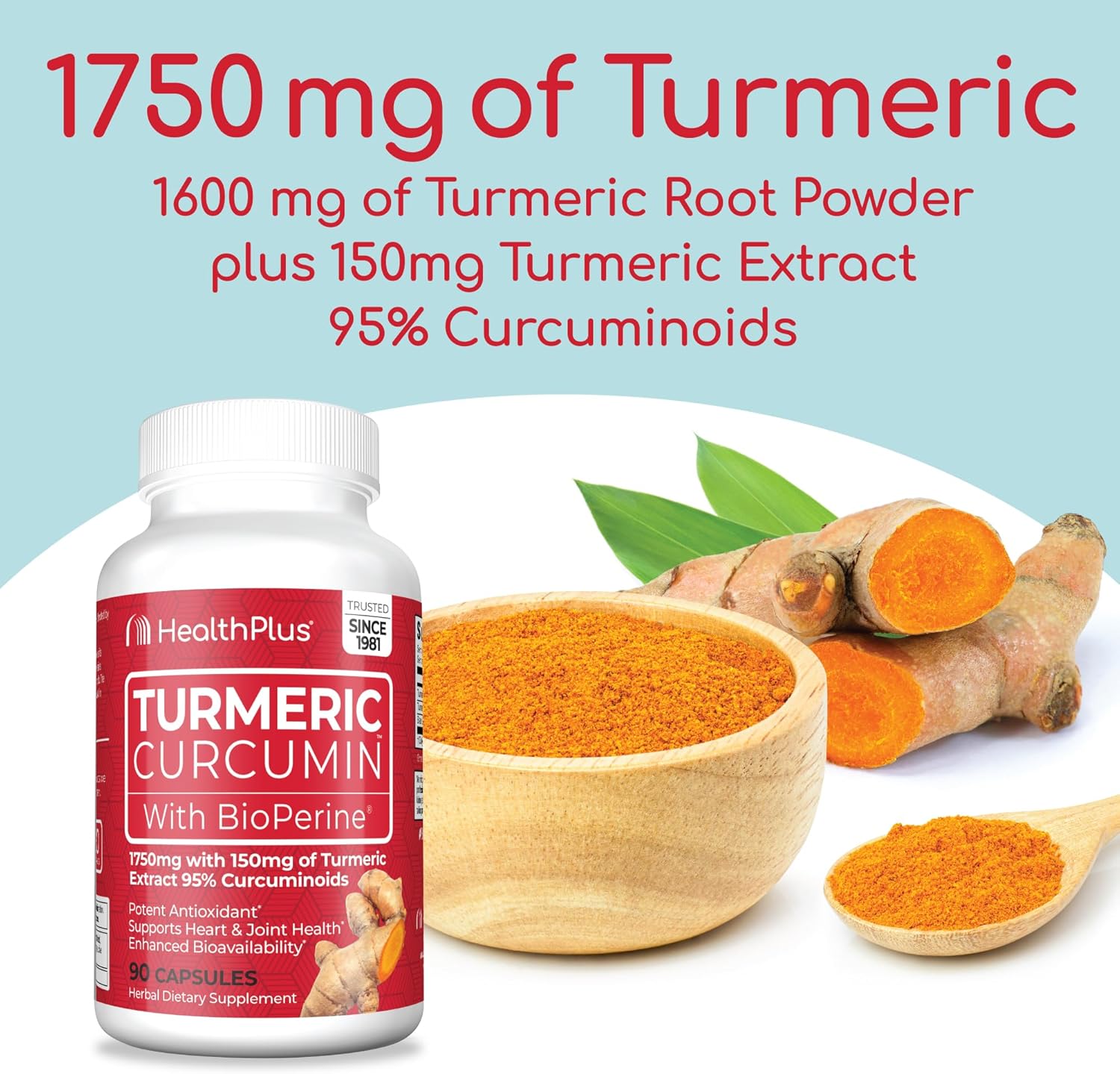 Health Plus Turmeric Curcumin, 90 Capsules, 30 Serving