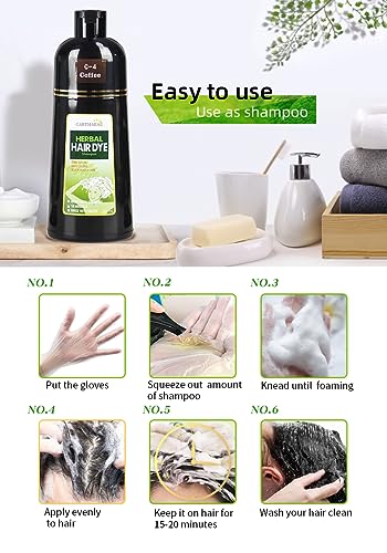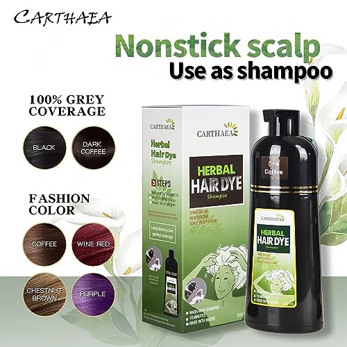 CARTHAEA offers a great Herbal Hair Dye Shampoo for Women & Men. This hair coloring shampoo works as a good white hair dye, grey hair dye or hair dye for dark hair. This product is also a convenient hair color for men that can be used as a men shampoo for mens hair color (men hair dye) and mens beard dye. This natural hair color shampoo is a ginger shampoo. Choose the right product variant for your need. The black variant is good as a jet black hair dye, black shampoo hair dye, natural black hair dye or black hair shampoo. The dark coffee variant is good as a dark brown hair color or hair dye dark brown. The coffee variant is good as a hair dye brown. The chestnut variant is good as a chestnut brown hair dye or light brown hair color. The wine red variant is good as a red shampoo for red hair or red hair shampoo. The purple variant is good as a purple shampoo for gray hair. Overall, this product is to be used as a shampoo color treated hair, a color depositing shampoo and conditioner and a hair color for women & men. It is very usefull as a grey hair shampoo for women, a shampoo for grey hair, a color shampoo for gray hair and a gray hair shampoo.