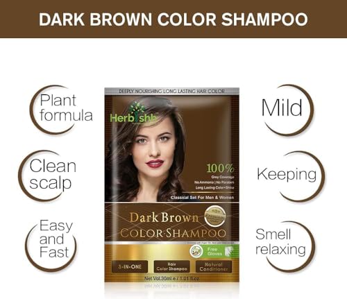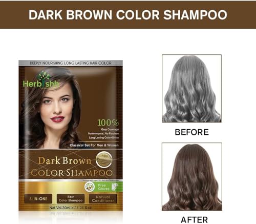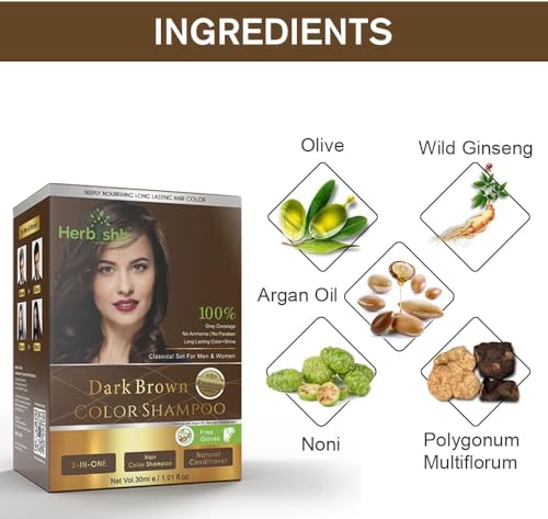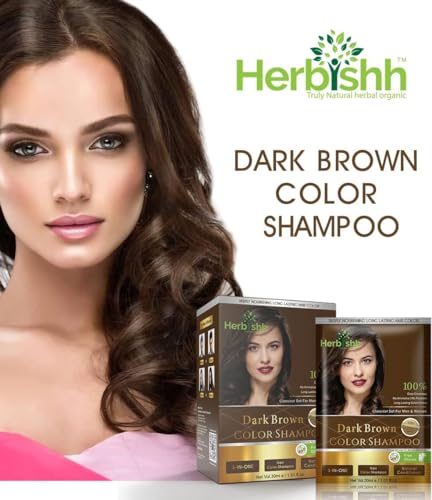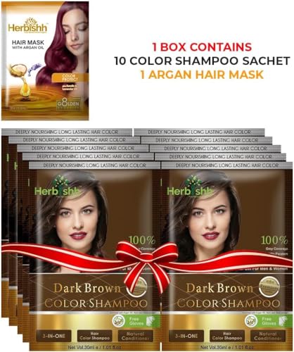 Herbishh Hair Color Shampoo for Gray Hair–Natural Hair Dye Shampoo with Argan Hair Mask–Travel size-Colors Hair in Minutes–Long lasting colour–10pack+1pack–Ammonia-Free (Dark Brown)