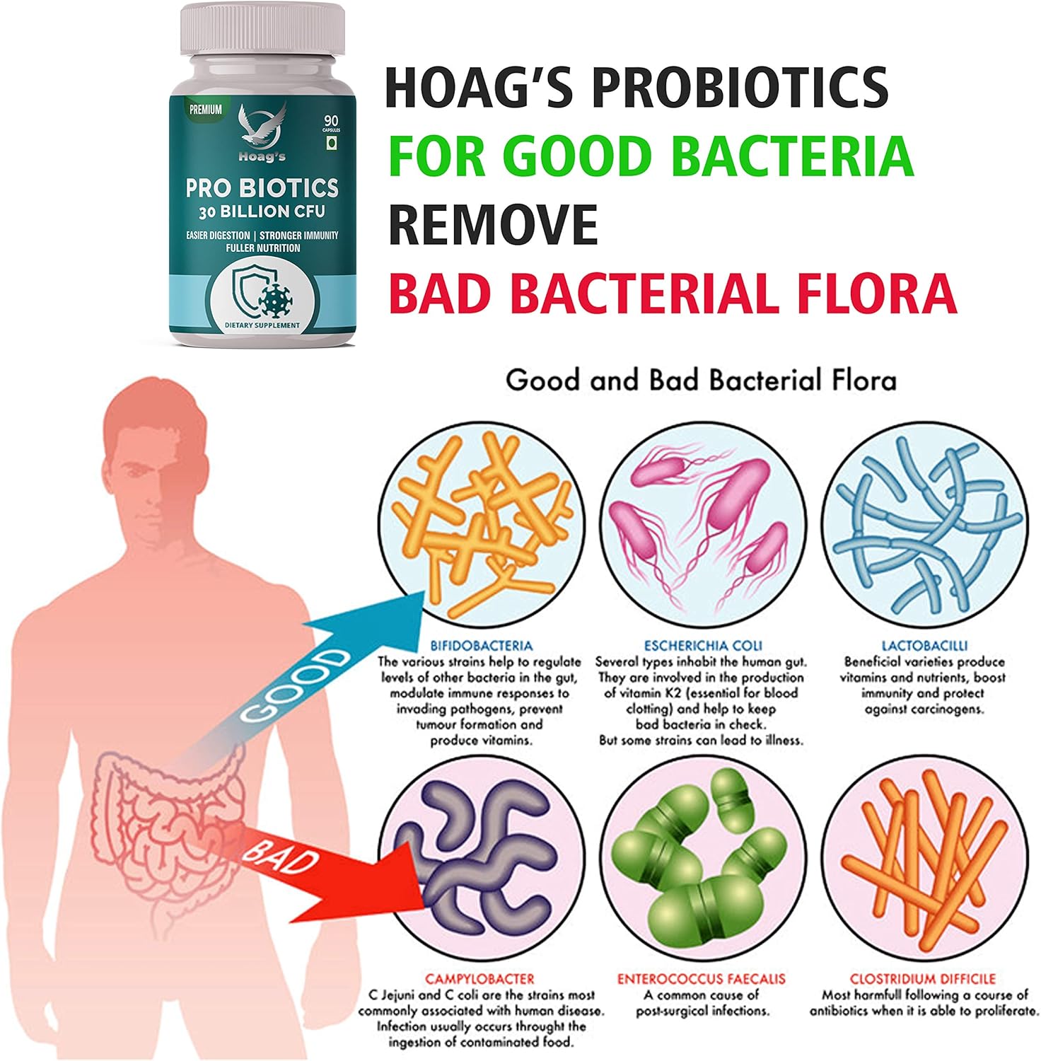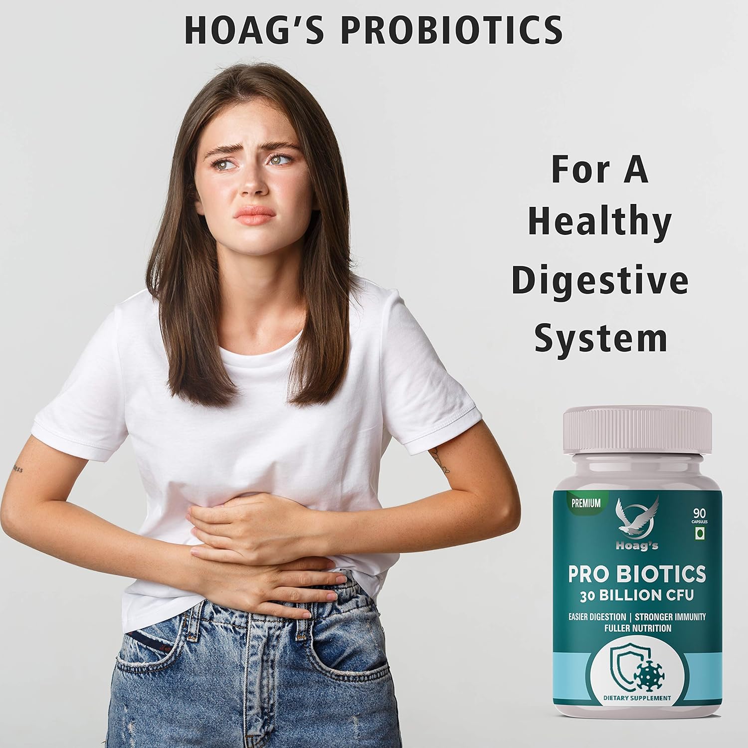 Hoag’s Probiotics Digestion Supplement Capsule 30 Billion CFUs, 16 Probiotic Stength- 90 Veg Capsules