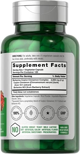 Horbaach Berberine Plus Ceylon Cinnamon | 2000mg | 120 Veggie Capsules | Vegetarian, Non-GMO & Gluten Free Supplement | Berberine Complex