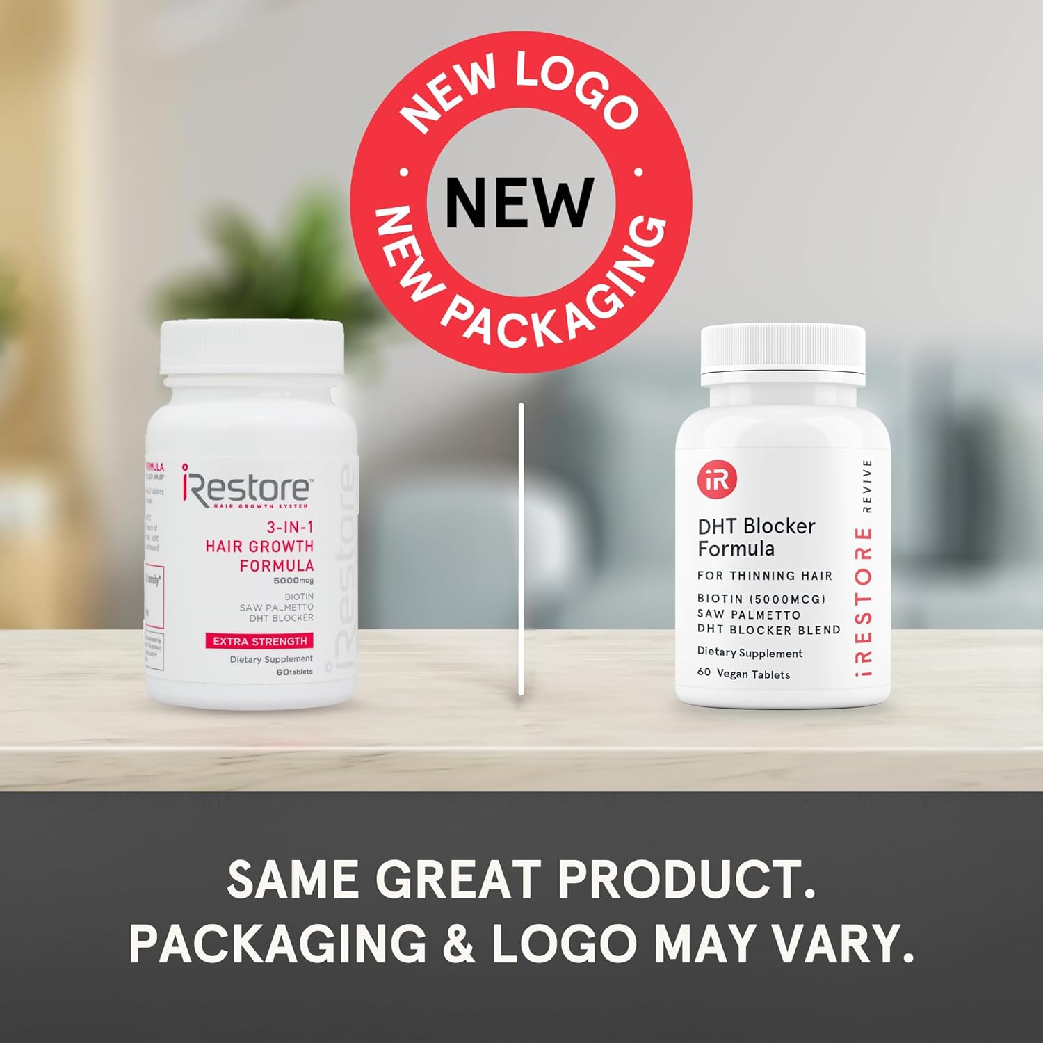 iRestore 3-in-1 Hair Growth Supplement with Biotin, DHT Blocker, Saw Palmetto, and Other Extracts (60 Count) – 3 Pack