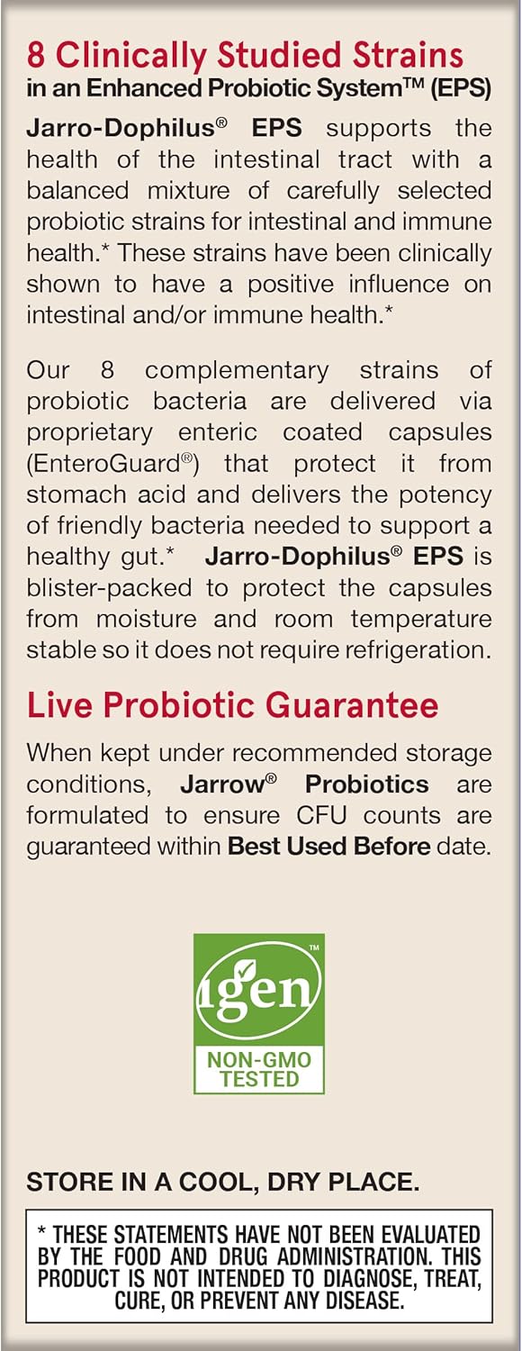 Jarrow Formulas Jarro-Dophilus EPS Probiotics 10 Billion CFU, Dietary Supplement for Intestinal Tract Support, Gut Health Supplements for Women and Men, 60 Veggie Capsules, 30 Day Supply