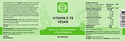 Kala Health Unique Vegan Formula with All 8 Tocopherols and Tocotrienols Vitamin E – Contains no PAH’s, Heavy Metals, Contaminants or Preservatives – Certified Sustainable – Hair, Scars and Skin