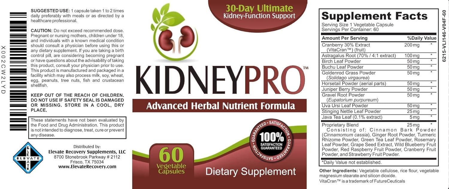 PROFESSIONALLY FORMULATED WITH: Cranberry Extract, Astragalus Root Extract, Birch Leaf, Buchu Leaf, Goldenrod Grass, Horsetail, Juniper Berry, Gravel Root, Uva Ursi Leaf, Stinging Nettle Leaf, Java Tea Leaf, Proprietary Blend Consisting of: Cinnamon Bark, Ginger Root, Turmeric Rhizome, Green Tea Leaf, Rosemary Leaf, Grape Seed Extract, Wild Blueberry Fruit, Red Raspberry Fruit, Cranberry Fruit, and Strawberry Fruit | Kidney Support Complex / Kidney Stone Support / Kidney Supplements / Kidney Detox