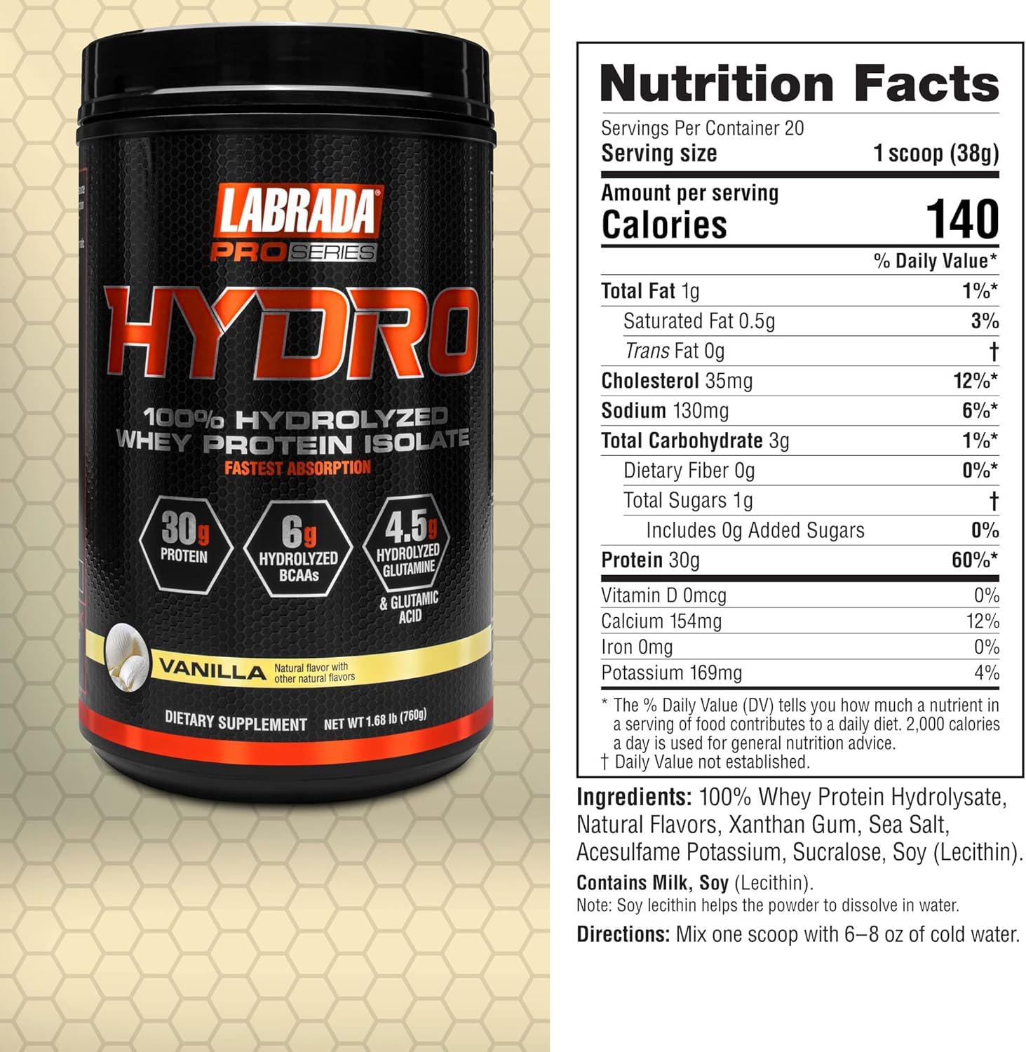 Labrada Hydro - Filtered to Remove carbs, fat, lactose and cholesterolLabrada Hydro - Filtered to Remove carbs, fat, lactose and cholesterol