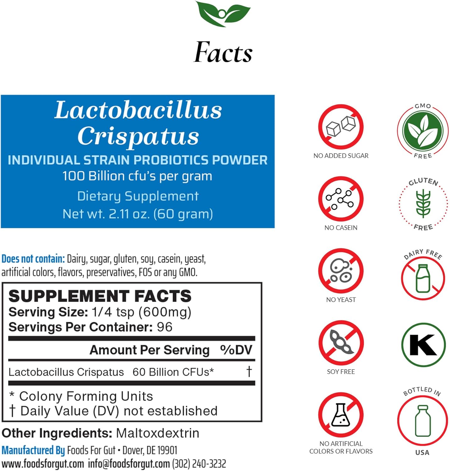 ✅ Ingredients: Lactobacillus Crispatus Probiotic Powder. L. Crispatus Excipients: Maltodextrin