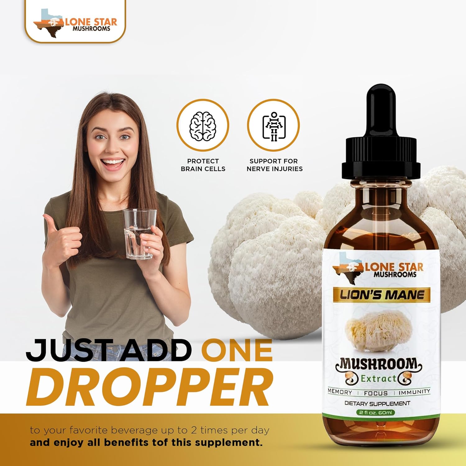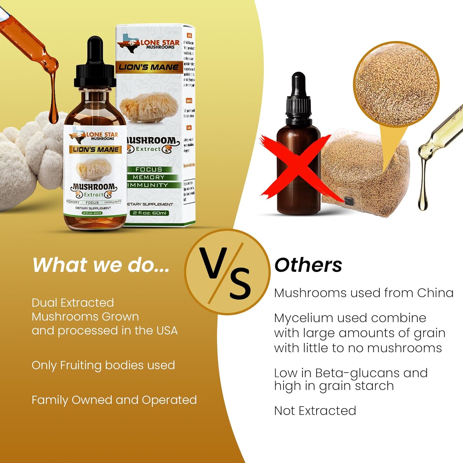 Lions Mane Dual Liquid Extract/Tincture | Organic Fruiting Bodies only | Grown in USA | Highly Concentrated | Memory, Focus, Immunity | No Grain/Filler