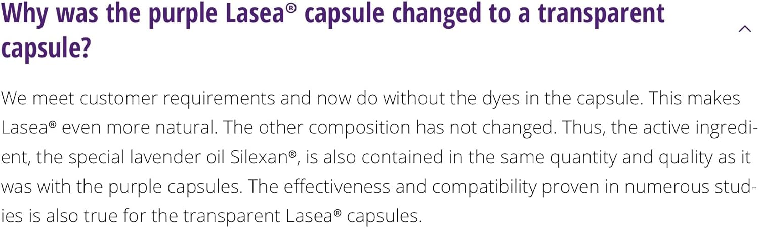 Direct from the manufacturer, authorized vendor: imported directly from the manufacturer by exclusive authorized vendor, carrollshop. Made in Germany. Lasea relies upon the effective power of lavender. And it only has to be taken once a day. Lasea has the following benefits – settles moods – calms inner unrest and racing thoughts – allows a better night’s sleep – safe and well-tolerated. The active natural agent in Lasea is called Silexan. It is obtained from a particular varietal of lavender. With its good tolerability, Silexan is effective without causing drowsiness or the risk of addiction. Lasea has undergone extensive clinical studies to prove its efficacy and tolerability. The manufacturing process uses gentle processing to create top quality. The narrow-leaved medicinal lavender is carefully harvested on a very precise schedule and they undergo a gentle distillation process on site. The quality of the active substances corresponds to the strict standards of the European Pharmacopoeia