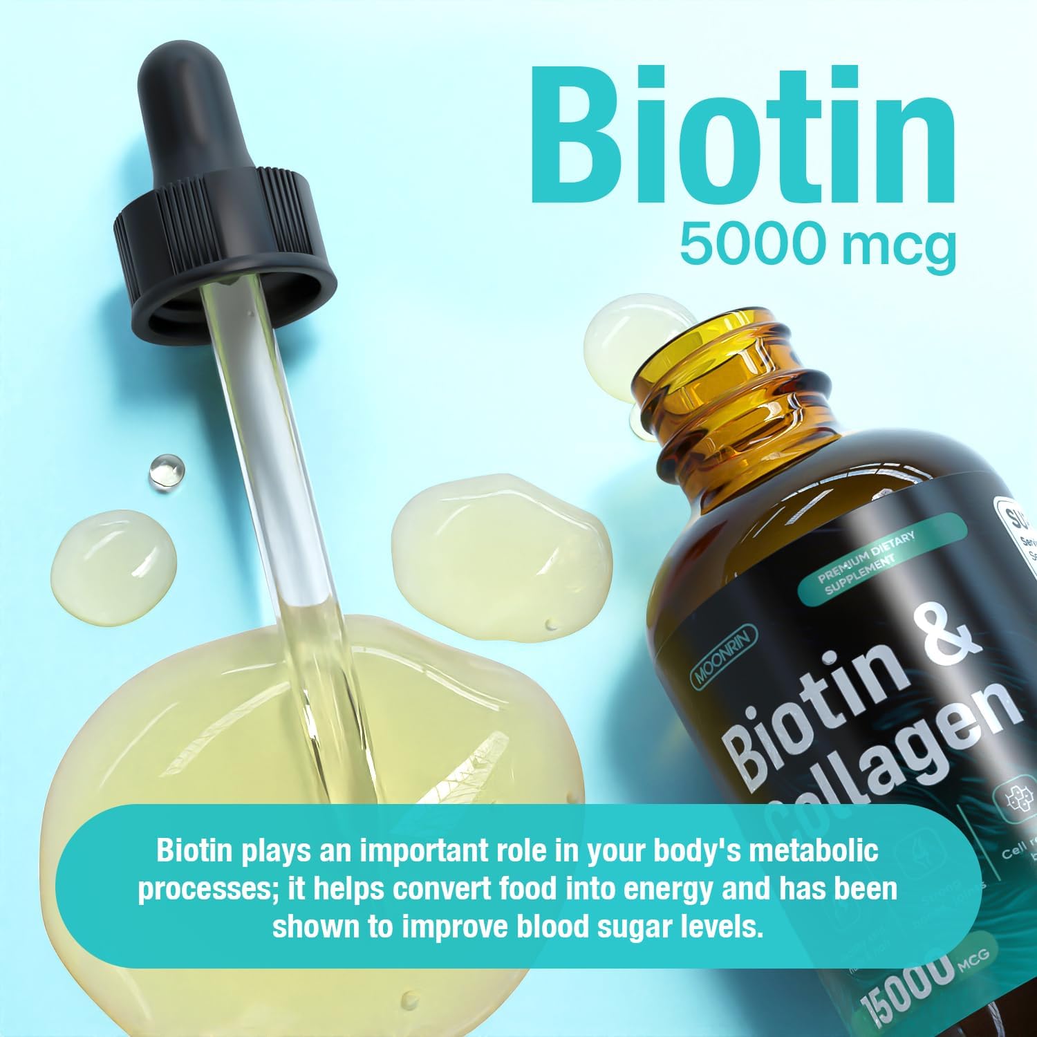 Shiny Hair & Strong Nails: Power your body with biotin. Our liquid biotin and collagen promote hair growth and support nail health by aiding your body in keratin production and boosting cell renewal