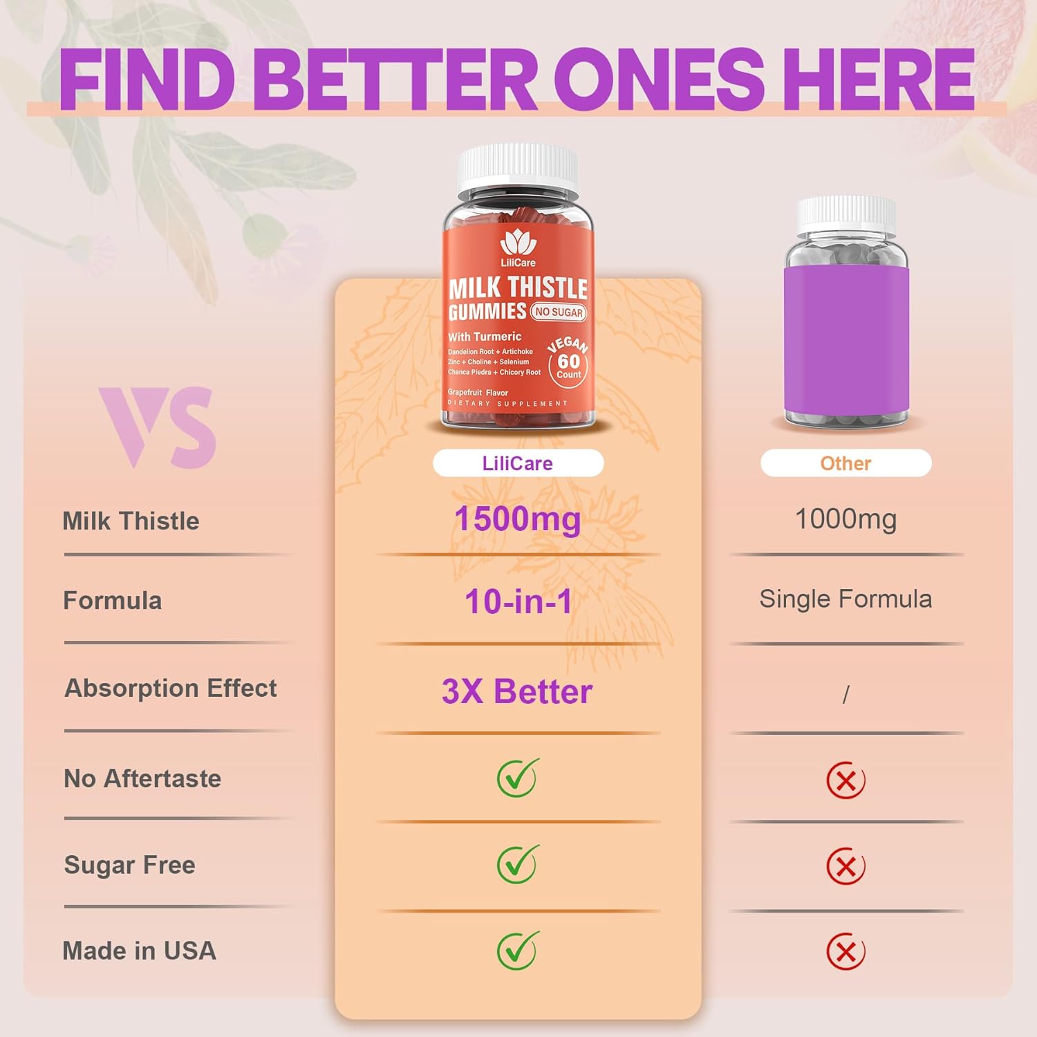 【Sugar Free, Vegan & No Aftertaste】- Enjoy the benefits of milk thistle with no artificial sugar, only plant-derived sweeteners – xylitol, which won’t cause cavities. These yummy grapefruit flavored gummies are free from GMOs, preservatives, artificial colors, dairy, soy, eggs, nuts, gluten, gelatin.