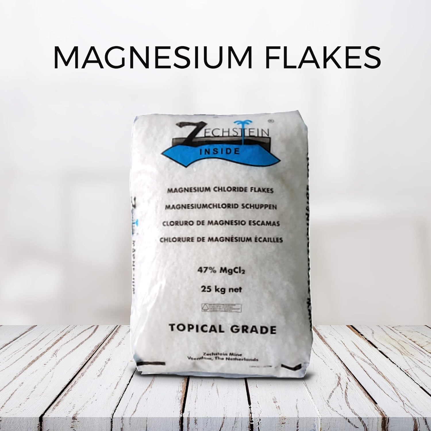 Magnesium Bath Flakes of Pure and All Natural Zechstein Inside Protocol, Netherlands Direct Magnesium Chloride for Bath and Foot Soaks, Bulk 56lb Bag – 25kg