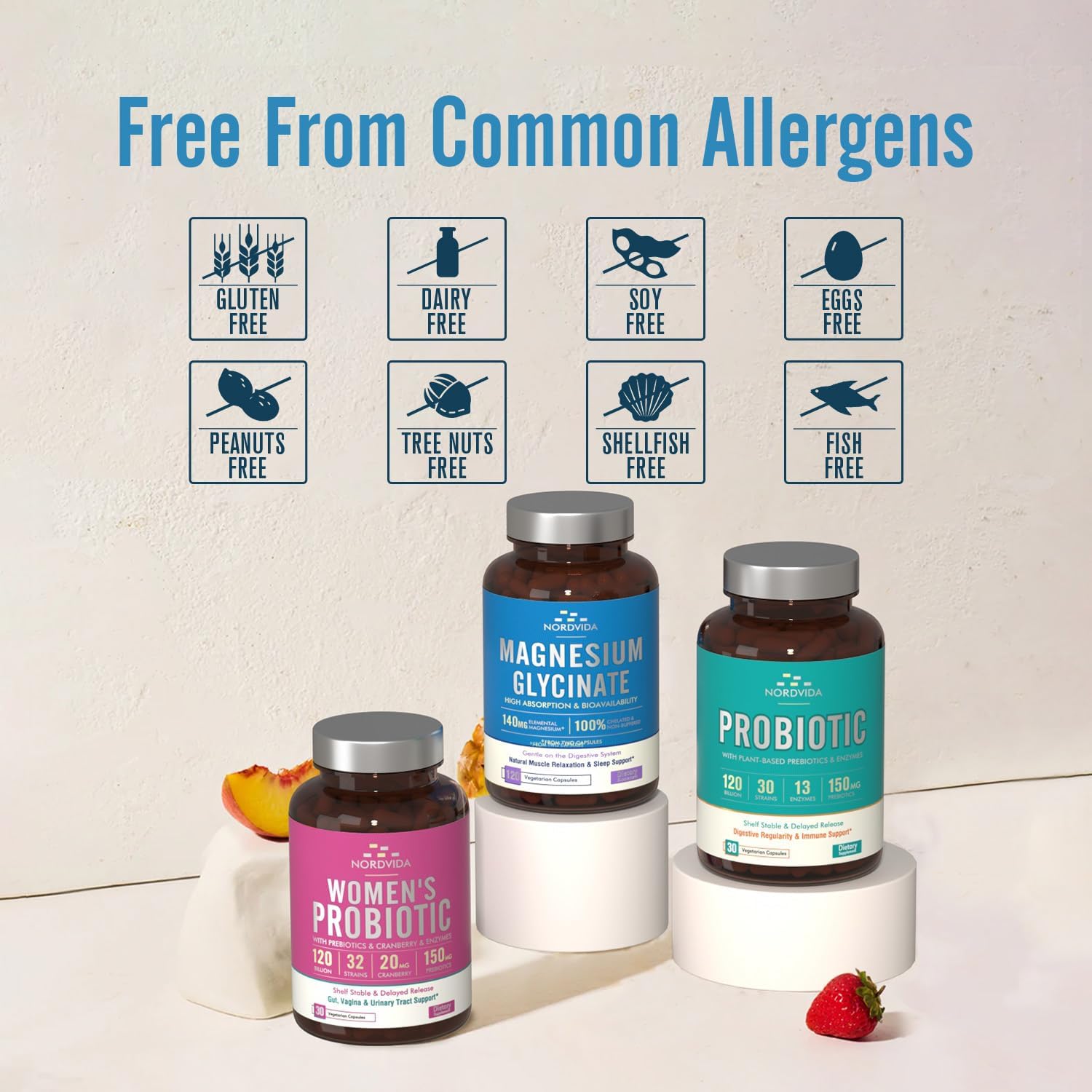 Maintain Ideal Magnesium Levels*: A vital nutrient for more than 300 bodily processes, magnesium is crucial for muscle, bone, heart & brain health, proper nerve function & energy metabolism.* NordVida is proud to offer Magnesium Glycinate capsules, with 140 mg of elemental magnesium per serving, a convenient way to up your daily magnesium intake.* We provide 120 easy-to-swallow capsules per bottle which will last you 60 days.