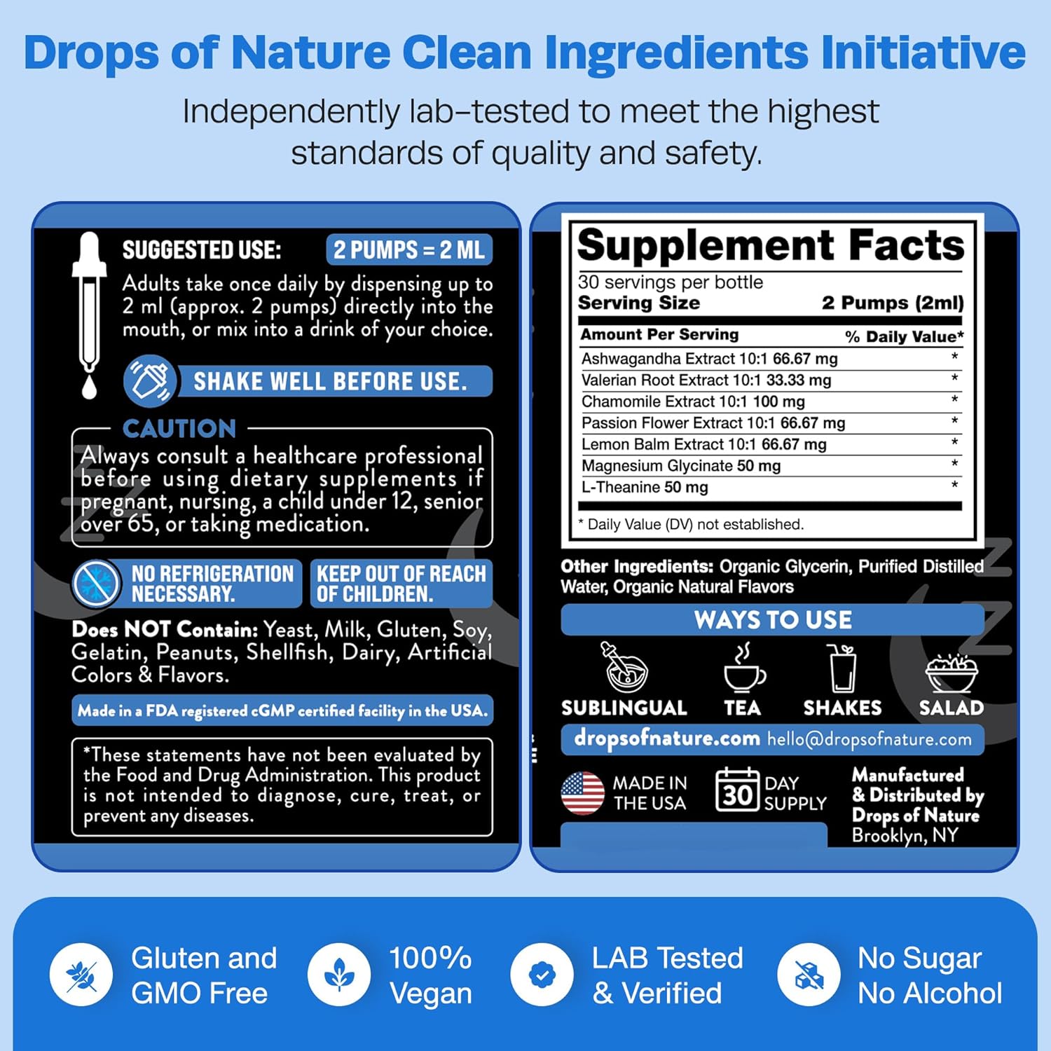 PURE WELLNESS, NATURALLY ENHANCED: Embrace unparalleled well-being with our unique supplement, harnessing the essence of nature’s best. This blend elevates your daily health ritual by combining the holistic benefits of Ashwagandha with the serene touch of Lemon Balm and Chamomile. Ideal for those seeking an organic boost to vitality and calm, this drop transcends ordinary magnesium glycinate powders and ashwagandha supplements, offering a sophisticated, clean, and effective approach to wellness.