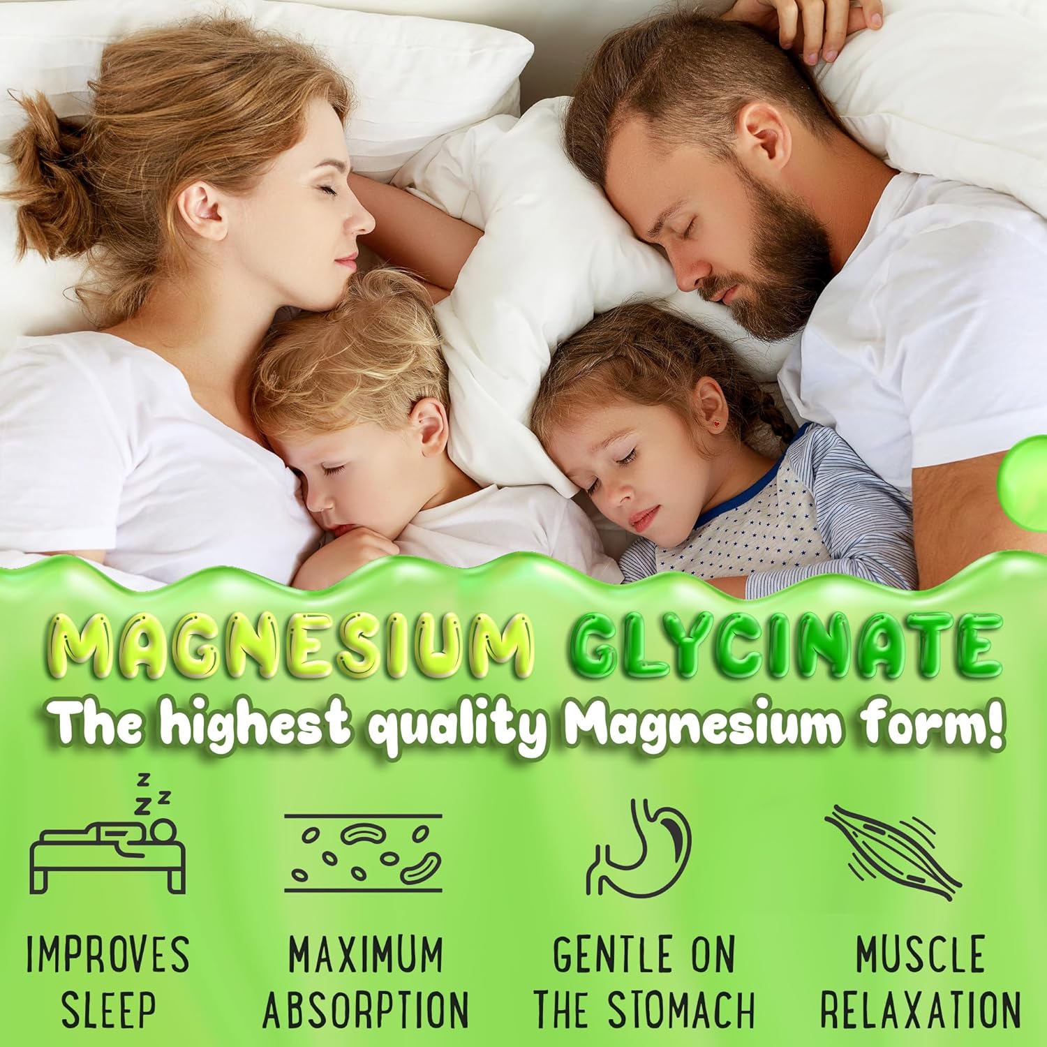 Magnesium Glycinate Gummies 400mg for Kids & Adults – B6 & D3 for Highest Absorption for Sleep, Muscle and Calm Support – 60 Vegan & Non-Gmo Chews with Apple & Kiwi