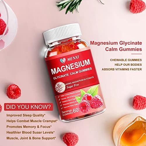 DELICIOUS RASPBERRY FLAVOR: Our magnesium glycinate gummies are easy to chew and have a pleasant taste, easy to swallow anytime without the need for water or food, quickly absorbed by digestive system and gentle on the stomach. 60 gummies for a 30-day supply.