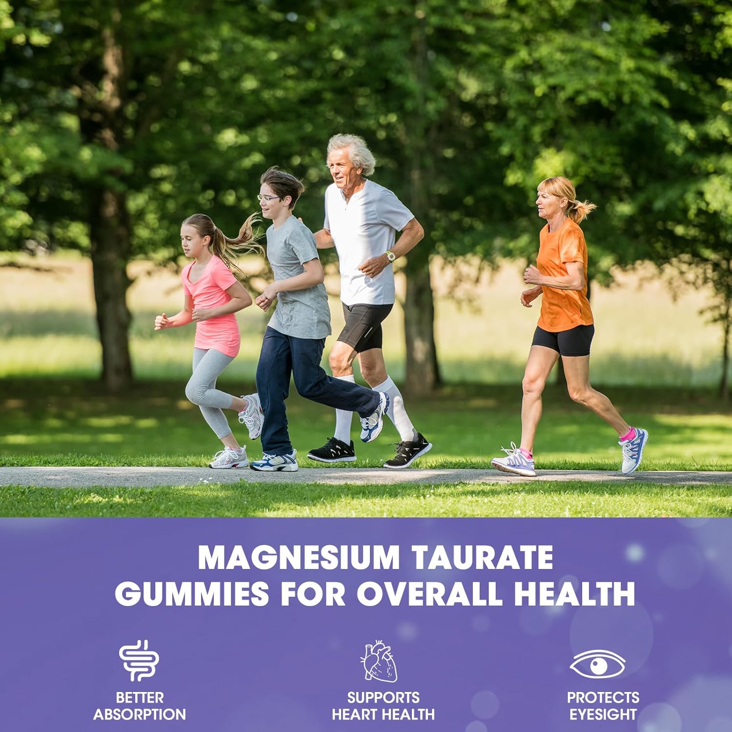 Magnesium Taurate Gummies for Men Women, Vegan Magnesium Taurate Supplement with Magnesium Glycinate 500mg, Malate, Aspartate, Chewable Magnesium Supplement – Vegan, Non-GMO-60 Count