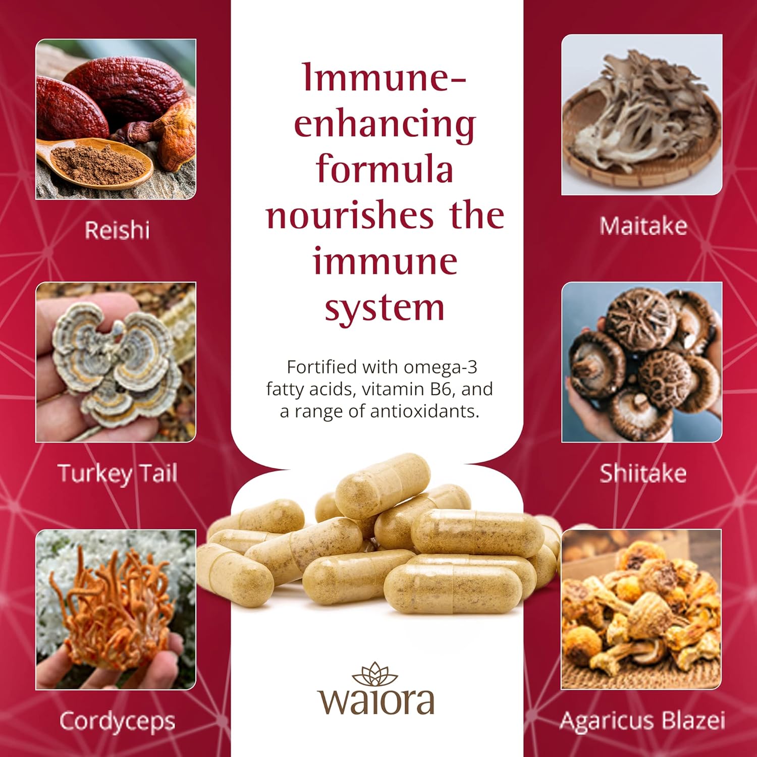 ASSISTS OPTIMUM HEALTH – Waiora’s Mushroom Supplement Capsules contain a mushroom extract that helps assist your everyday health. Our technologically advanced mushroom blend serves as excellent armor for your body’s overall wellness.