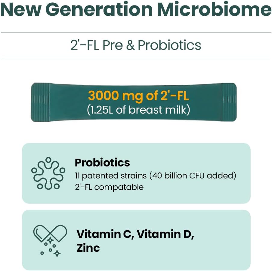 MOMSTAMIN 2′-FL HMO Prebiotics Probiotics Powder Stick, 3,000mg Human Milk Oligosaccharide Per Serving + 11 Strains Synbiotics for Immune Digestive Supplement Gut Health IBS Relief (1 Month, Premium)