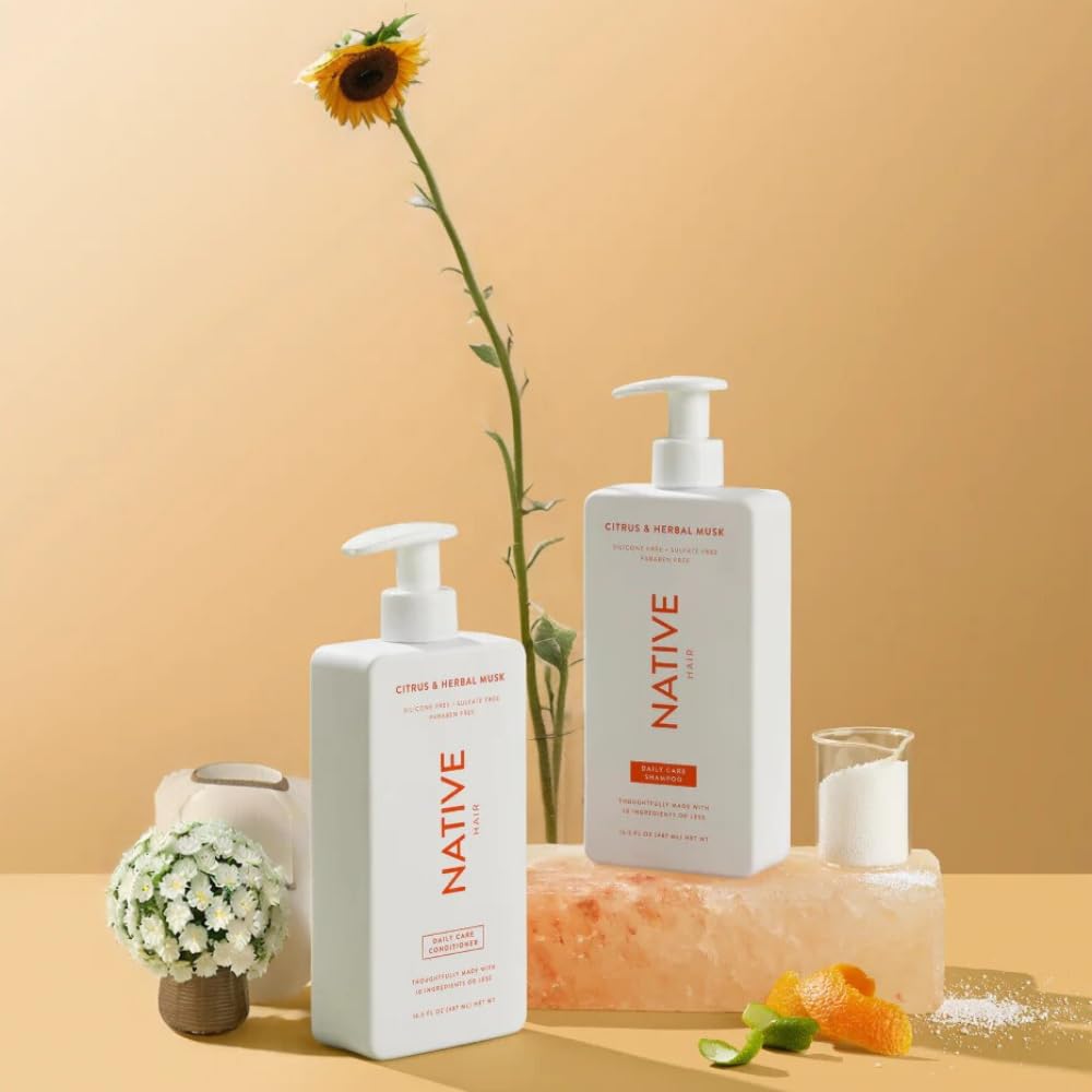 Citrus & Herbal Musk – Indulge in the refreshing citrus and herbal musk scent of our Native Shampoo and Conditioner Set. This daily clean shampoo and conditioner not only leaves your hair smelling divine, but it also leaves it feeling soft, shiny, and thoroughly cleansed. Our sulfate-free formula is gentle enough for daily use, making it a perfect addition to your routine. Experience the luxurious blend of natural ingredients with our moisturizing shampoo and conditioner.