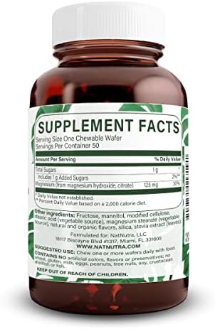 Natural Nutra Chewable Magnesium Supplement with Citrate and Chelate for Kids and Adults, Best Pure Mag Chew for Muscle, Nerve, Bone, and Heart Health, 125mg, 50 Vegan Wafers