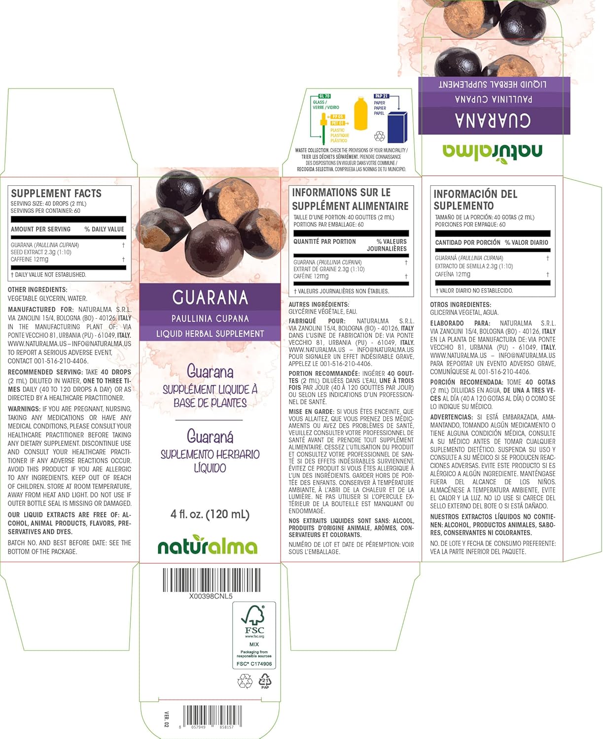 Naturalma Guarana (Paullinia cupana) seed Alcohol-free Tincture – 4 fl oz Liquid extract in drops – Herbal supplement – Vegan
