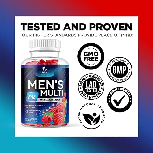 Nature’s Multivitamin for Men Gummies – Berry Flavored Mens Multivitamins Daily Supplement with Vitamins A, C, D, E, B6, B12, & Zinc – Gummy Vitamin for Energy & Immune Health Support – 60 Gummies