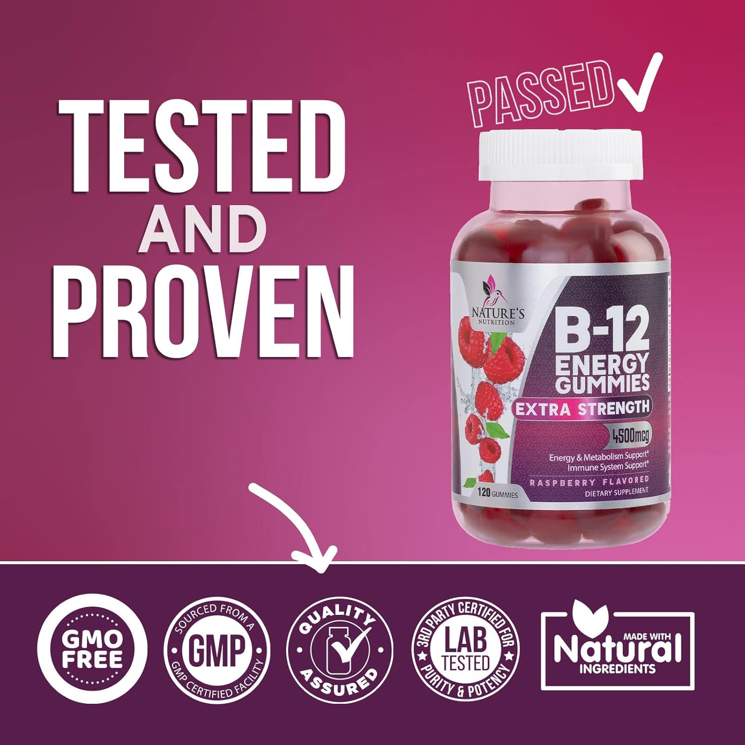 Trusted Formula: Our Vitamin B12 Energy Gummies are formulated and manufactured following strict cGMP guidelines; Our B12 Vitamin Supplement is third party tested to assure the quality and purity of each batch