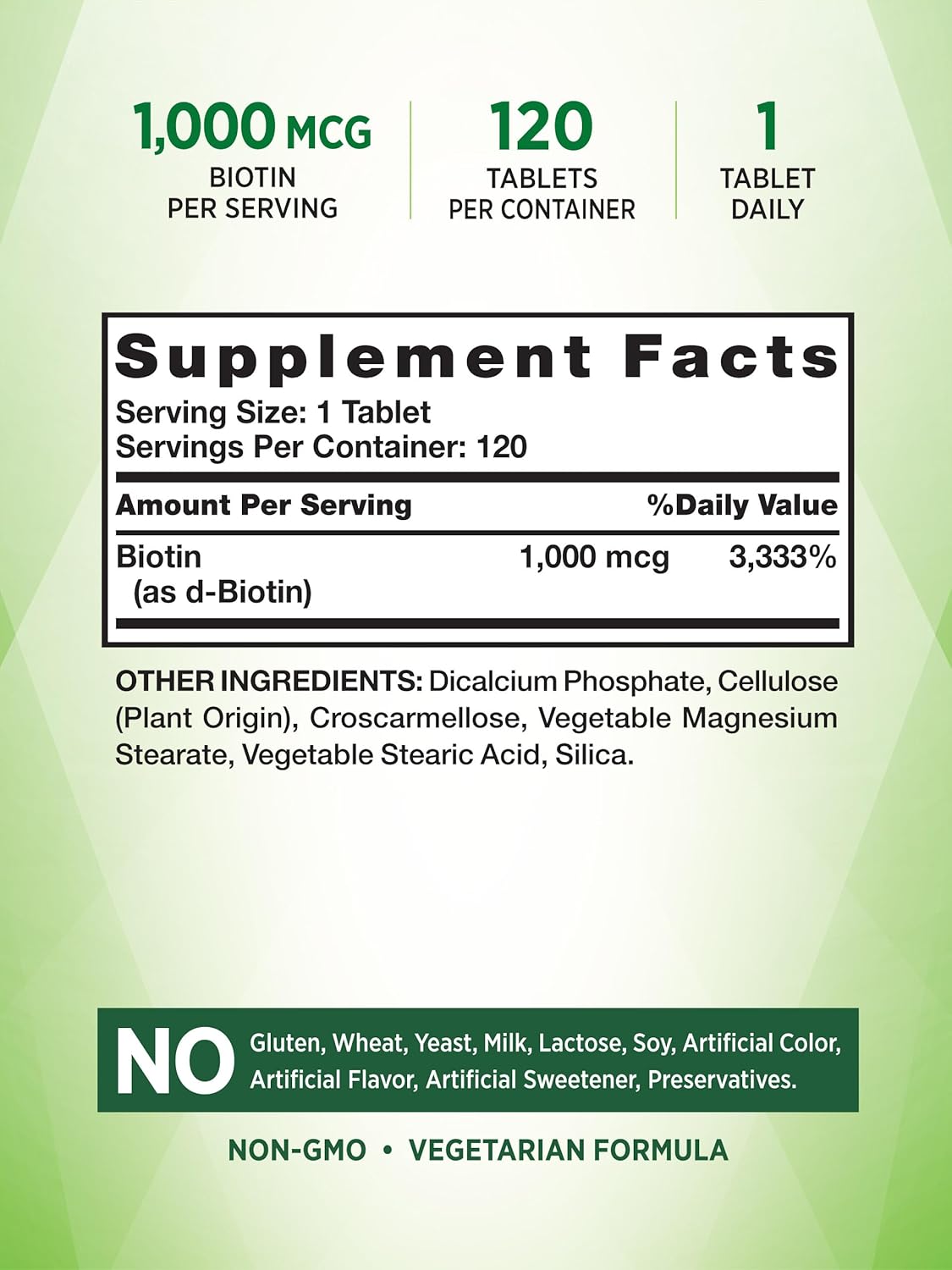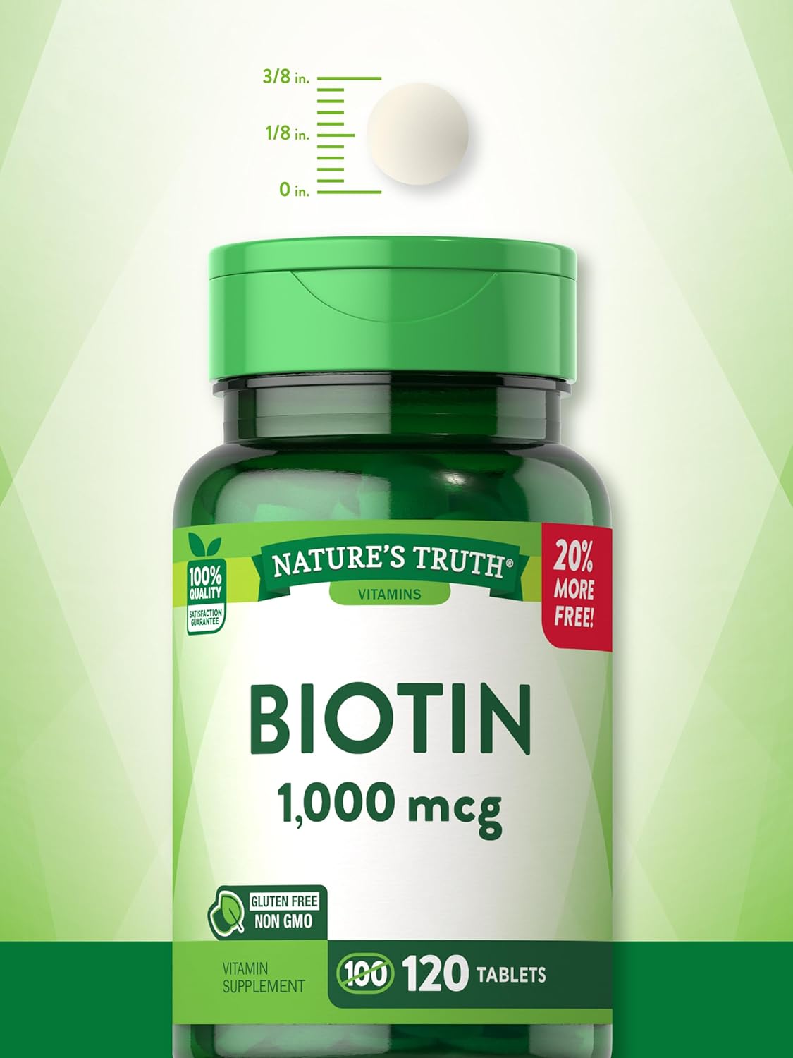 Nature’s Truth Biotin 1000mcg | Hair Skin and Nails Pills | 120 Tablets | Vegetarian, Non-GMO, Gluten Free Supplement