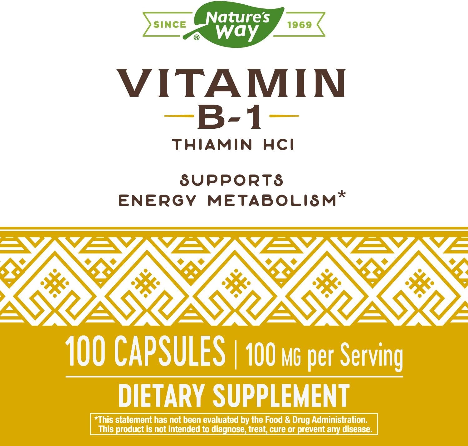 Nature’s Way Vitamin B-1 provides 100 mg of thiamin per serving