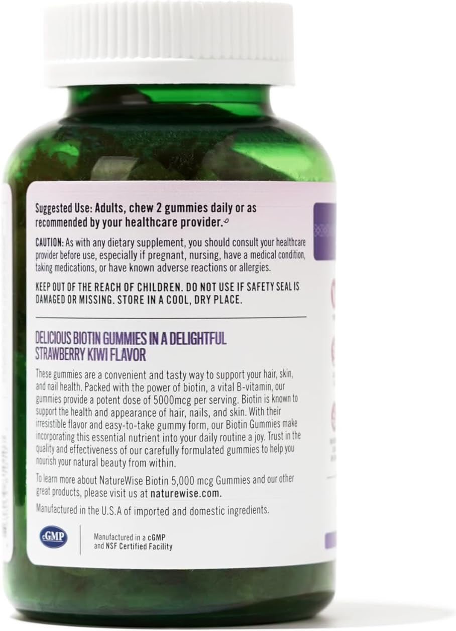 NatureWise Biotin Gummies – Hair, Skin and Nails Vitamin – Biotin 5000mcg Supports Hair and Nail Strength – Strawberry-Kiwi Flavor – Vegan, Non-GMO, Gluten Free – 90 Count[45 Day Supply]