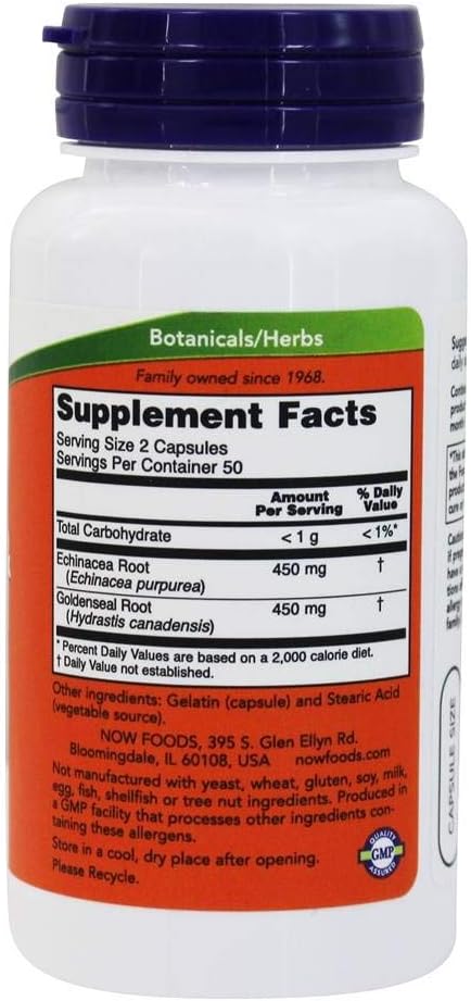 Now Foods Echinacea and Goldenseal Root 100 Capsules