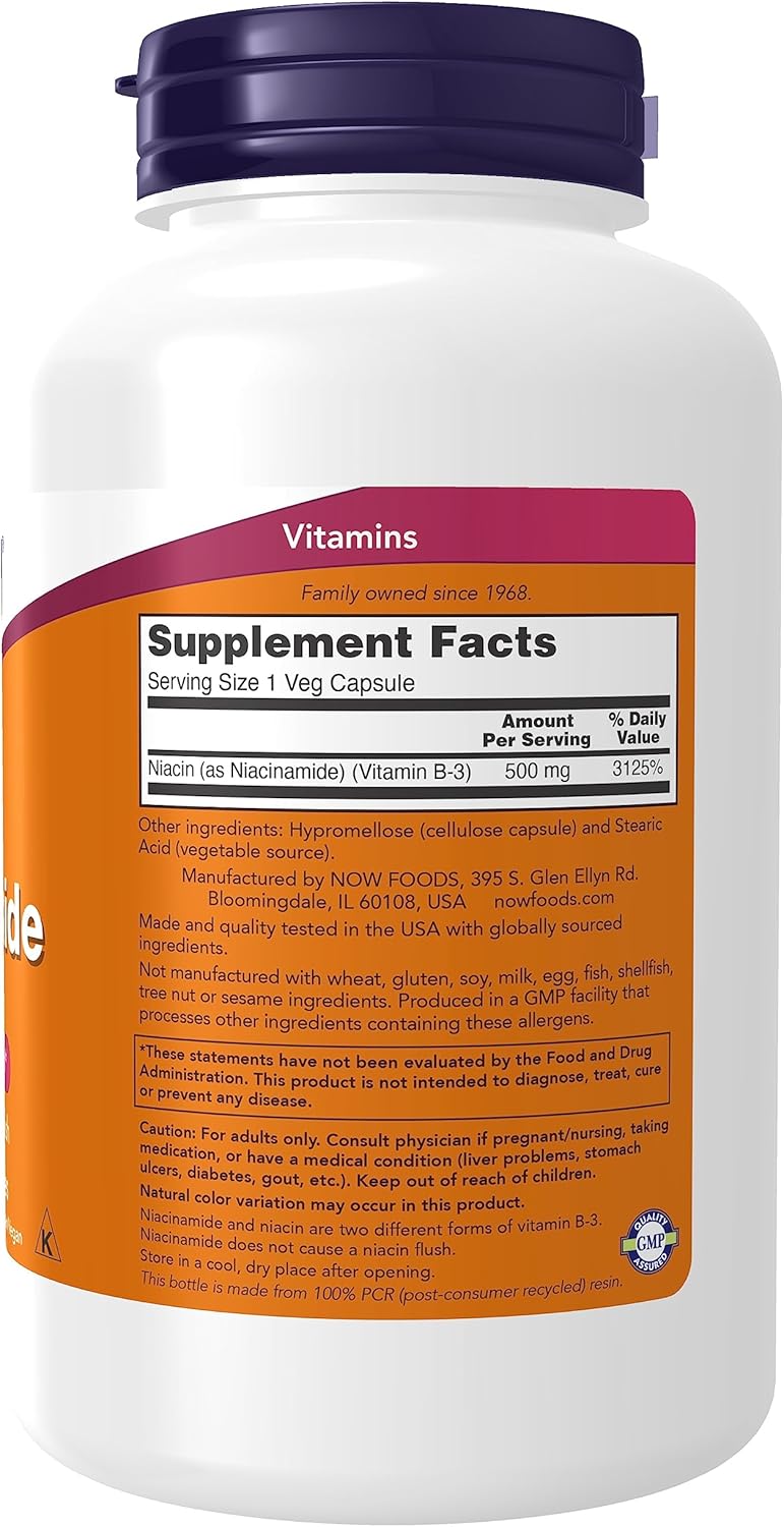 Now Foods, Niacinamide (Vitamin B-3) 500 mg, Energy Production*, 250 Veg Capsules