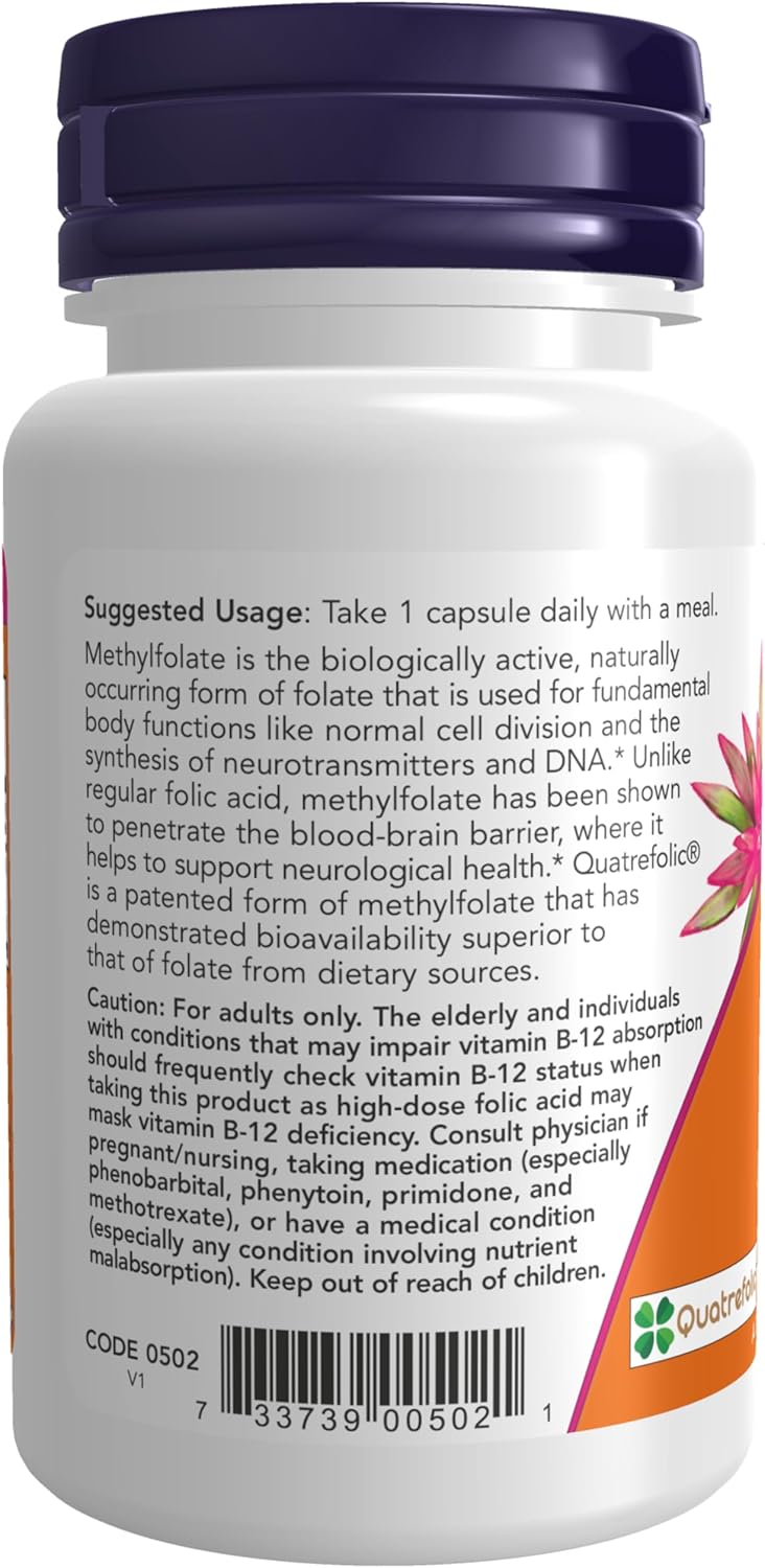 NOW Supplements, Methyl Folate 5000 mcg, Superior Bioavailability, 50 Veg Capsules