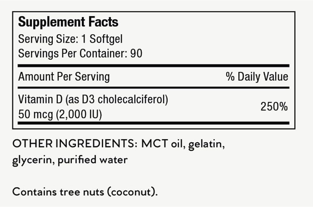 Vitamin D3 is also essential for bone health because it helps absorb important bone health nutrients. Our vitamin D3 dietary supplement contains a potent yet safe 2,000 IU dose