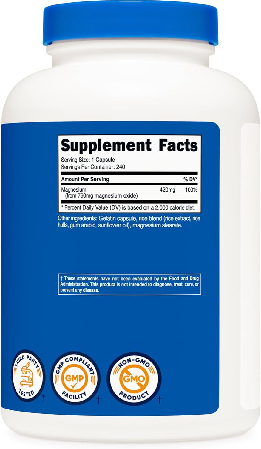 Nutricost Magnesium Oxide 750mg, 240 Capsules – 420mg of Magnesium, Non-GMO, Gluten Free