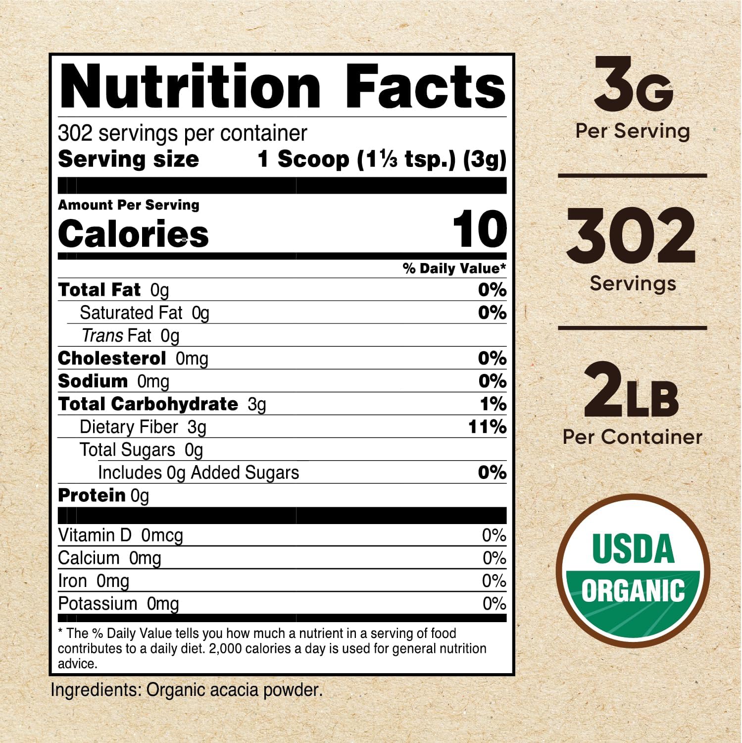 3 Grams Of Organic Acacia Fiber Per Serving; Scoop Included