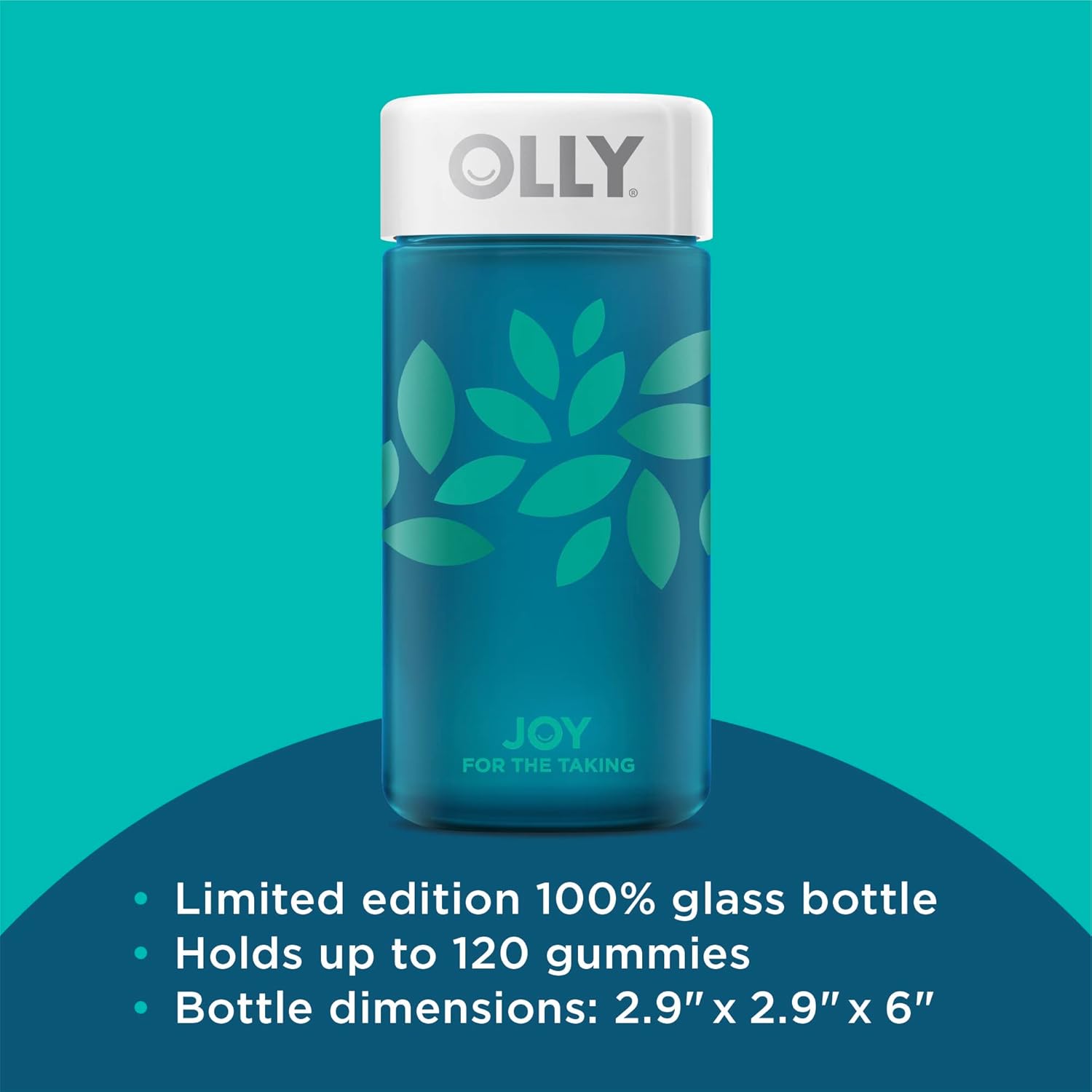 OLLY Joy Jar Gift, Easy Refillable Glass Bottle Vitamin Container, Holds Up to 120 Vitamin Gummies, Limited Edition 2022