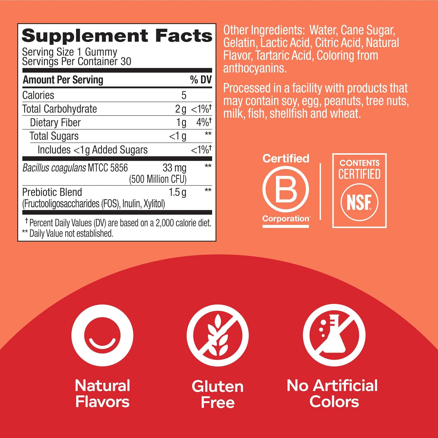 OLLY Probiotic + Prebiotic gummies double down with a boost of the good guy bacteria plus Prebiotic Fiber to help keep things moving in the right direction.* These Probiotic gummies for adults serve up a powerful combination of live Probiotics and Prebiotic Fiber to support natural flora and digestion balance. Probiotics deliver 500 million Bacillus Coagulans, good bugs that work with your body’s natural bacteria to support a healthy digestive tract and immune system, and Prebiotic Fiber nourishes your good bacteria so it can work more efficiently in your body.* Good health is at the center of everything we do. That’s why we’ve made it our mission to make nutrition easy to understand. We do it by crafting products that are as effective as they are delicious—because we know when something feels good, you’re more likely to do it.* *These statements have not been evaluated by the Food and Drug Administration. This product is not intended to diagnose, treat, cure or prevent any disease.