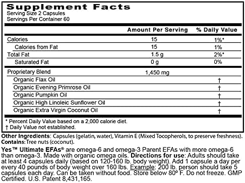 ✅ YES Ultimate EFAs Supplements are produced with cold-pressed organic seed oils containing Parent Omega-6 and Parent Omega-3. Based on the formulation of Brian Peskin Ph.D. Organic Oils certified by QAI International.