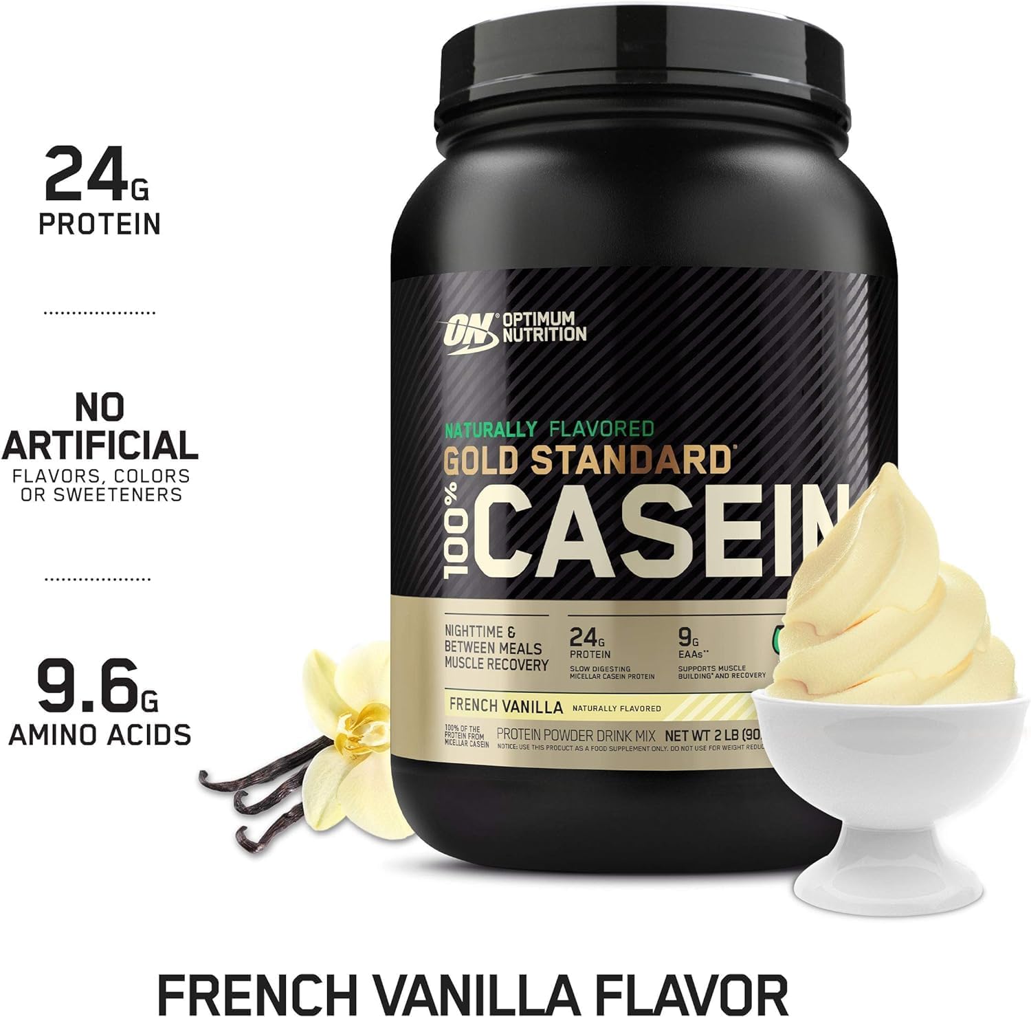 OPTAE Optimum Nutrition Naturally Flavored Gold Standard 100% Micellar Casein Protein Powder, French Vanilla, 2 Pound (Packaging May Vary)