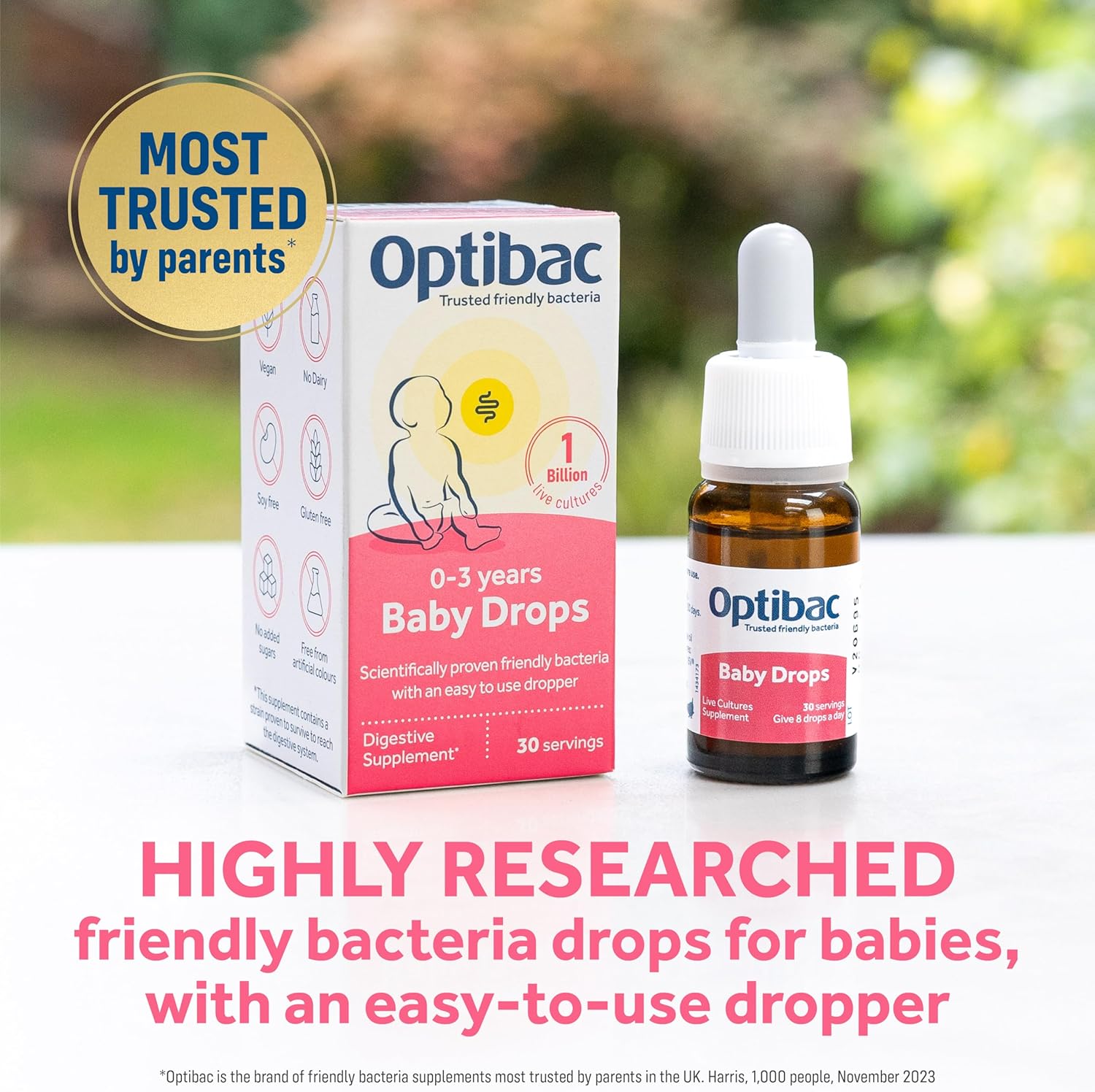 Optibac Probiotics Baby Drops – Vegan Probiotic for Newborn Babies & Infants to Support Digestion & Immune Health, 1 Billion CFU – 30 Day Supply
